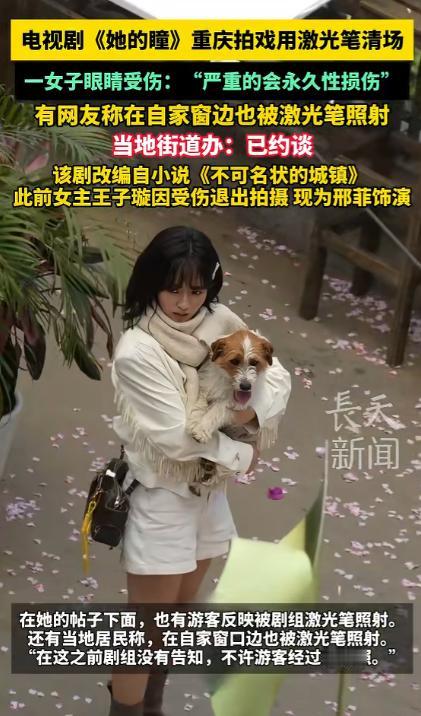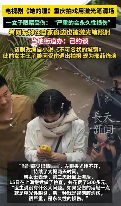 “谁给他们的权力?” 上海一女子在重庆网红打卡点拍照时,忽然感到眼睛刺痛,抬头查看时才发现,某剧组工作人员居然用绿色激光笔对准她的眼睛,在发现女子抬头看后,工作人员仍然没有收手,最终造成女子眼睛电光性眼炎。在事情曝光后,才发现不只女子一个受害者。网友:必须曝光。 谁都没料到,只是专程跑到重庆热门网红打卡地拍几张纪念照,竟会遭遇一场突如其来的眼部伤害,这样离谱又让人心惊的事,就真实发生在了一位来渝游玩的上海女游客身上。 事发当天,这位韩女士特意来到重庆当地人气超高的网红打卡点位,想趁着人流量尚可,拍下几张兼具山城特色的照片留作纪念。 可她刚找准拍摄角度、准备按下快门的瞬间,一阵尖锐又难忍的刺痛感猛地袭来,直直扎进她的眼球里,眼泪不受控制地疯狂涌出,视线瞬间变得模糊扭曲,连眼前的景物都看不清楚了。 她下意识揉着眼睛,视线里的光斑晃了半天,才抬头看清源头,剧组围挡后,一名穿白色工作服的工作人员正举着一支绿色激光笔,那道刺眼的绿光还在她脸上晃了晃。 她忍不住喊了句 “你干嘛?”,可对方不仅没收手,反而慢悠悠地把激光笔移开,继续对着周围的游客比划。 当晚回到住处,韩女士的眼睛疼得更厉害了,畏光得连窗帘都不敢拉开,左眼肿得只剩一条缝,不停流着泪。 第二天一早,她赶紧去了附近的眼科医院,医生检查后给出的诊断让她心里一沉:电光性眼炎。 “这是角膜上皮被强光灼伤了,” 医生指着检查单解释,绿色激光的穿透力比普通光线强得多,直接损伤了眼睛最娇嫩的角膜。 现在已经出现了点状混浊,再晚来一步,或者照射时间再长,角膜可能会留下疤痕,严重的话会导致视力下降,甚至永久性损伤。 韩女士拿着诊断书,越想越委屈。她只是来重庆打卡,没挡着谁拍戏,凭什么要用激光笔照眼睛? 抱着一丝希望,她把自己的经历和医院的诊断证明发在了社交平台,配了张红肿的眼睛照片,没带太多情绪,只是想提醒其他游客注意安全。 没想到这条动态很快就炸了锅,评论区里的留言一条接一条跳出来,全是和她有相同遭遇的人。 有个重庆本地的阿姨留言,说自己住在白象居的老居民楼里,前几天晚上正抱着孙子在窗边喂奶,一道绿光突然扫过孩子的眼睛,孩子当场就哭了,她拉开窗帘才看到楼下剧组在拍戏,工作人员正拿着激光笔往楼上扫,吓得她赶紧把孩子抱回屋里,连问都没敢问。 顺着这些留言,网友们很快扒出了涉事剧组的身份,正在白象居取景拍摄的悬疑剧《她的瞳》。 这部剧从开拍起就没少受关注,改编自悬疑小说《不可名状的城镇》,原本定的女主是演员王子璇,可拍摄过程中,王子璇意外受伤,不得不退出剧组,后来才由邢菲接棒,接手了女主的角色。 剧方原本靠着题材和演员阵容,没开播就攒了不少期待,如今却因为这起伤人事件,被推上了风口浪尖。 随着讨论越来越热,有媒体联系到了重庆当地的街道办,工作人员回应,已经接到了多名居民和游客的投诉,第一时间约谈了《她的瞳》剧组的制片方和现场负责人。 街道办的工作人员说,白象居是重庆热门的网红打卡点,每天人流量极大,剧组拍戏占用公共区域,本应该提前做好清场和安全保障,用激光笔驱赶游客的方式,不仅违反了拍摄的安全规范,也严重侵犯了路人的合法权益。 其实在重庆,不少网红打卡点都有剧组拍戏的情况,像东水门、洪崖洞这些地方,经常能看到剧组的围挡和设备。 以往剧组清场,大多是用工作人员维持秩序,提醒游客避让,很少有剧组会用激光笔这种危险工具。 有熟悉影视拍摄的业内人士说,激光笔的功率如果超标,日常使用都可能造成伤害,更别说对着人的眼睛直射了,剧组这么做,要么是为了快速清场节省时间,要么是工作人员安全意识淡薄,却完全忽略了路人的安全。 韩女士的经历被更多人转发后,网友们的愤怒越来越浓。 有人翻出了剧组过往的拍摄花絮,质疑剧组的现场管理混乱,有人呼吁相关部门严查剧组的资质和安全措施,不能让拍戏成为伤害路人的借口。 一件本该顺利进行的影视拍摄,最终演变成伤害普通民众的安全事件,不仅让受害者承受身体上的痛苦,也让大众对剧组的管理规范产生了极大质疑。 拍戏创作优质作品本是好事,可任何创作都不能建立在伤害他人、无视公共安全的基础上,公共场合从来不是剧组的 “法外之地”,更没有任何人有权拿着危险工具,随意侵害他人的身体健康。 对于这件事,您有什么想说的吗?欢迎评论区留言讨论。 信源:今视频长天新闻2025-06-16——《电视剧《她的瞳》重庆拍戏用激光笔清场,一女子眼睛受伤:“严重的会永久性损伤”……》
