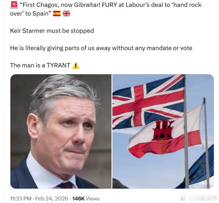 凯尔·斯塔默在没有任何授权或投票的情况下,将英国的一部分领土拱手送出。