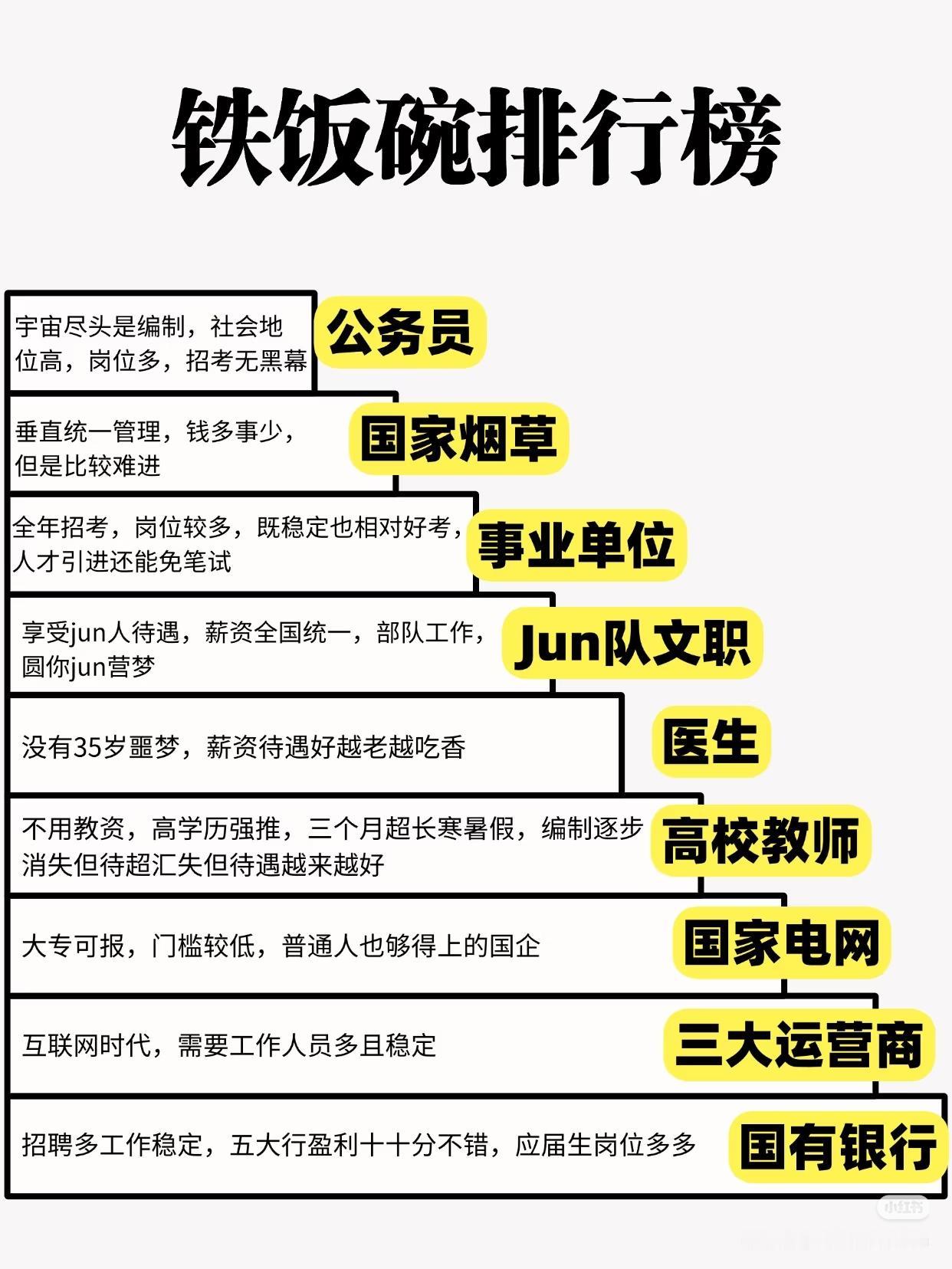 烟草>电网>公务员>医生>老师>银行[吐舌]个人观点,我在在外围[笑哭]