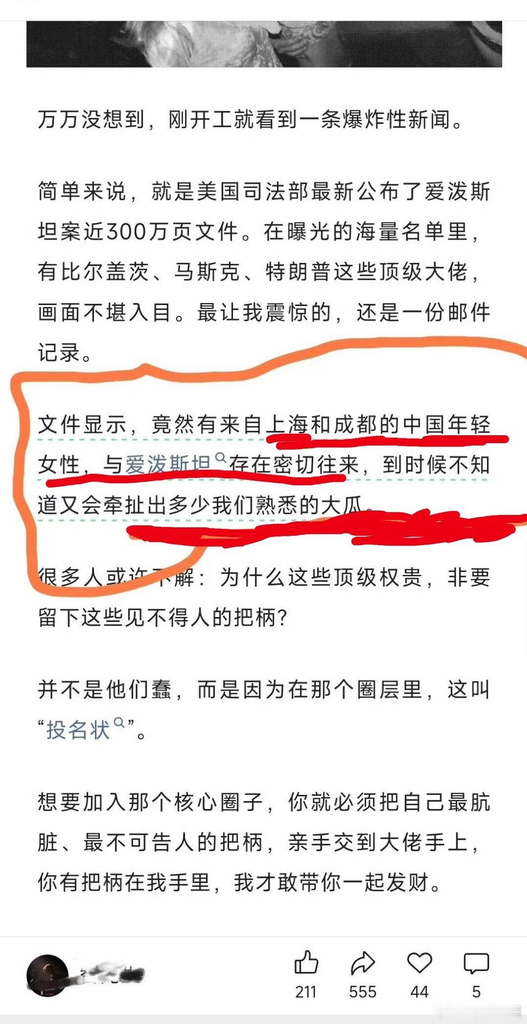这瓜太大了!爱泼斯坦文件波及上海成都女性!
