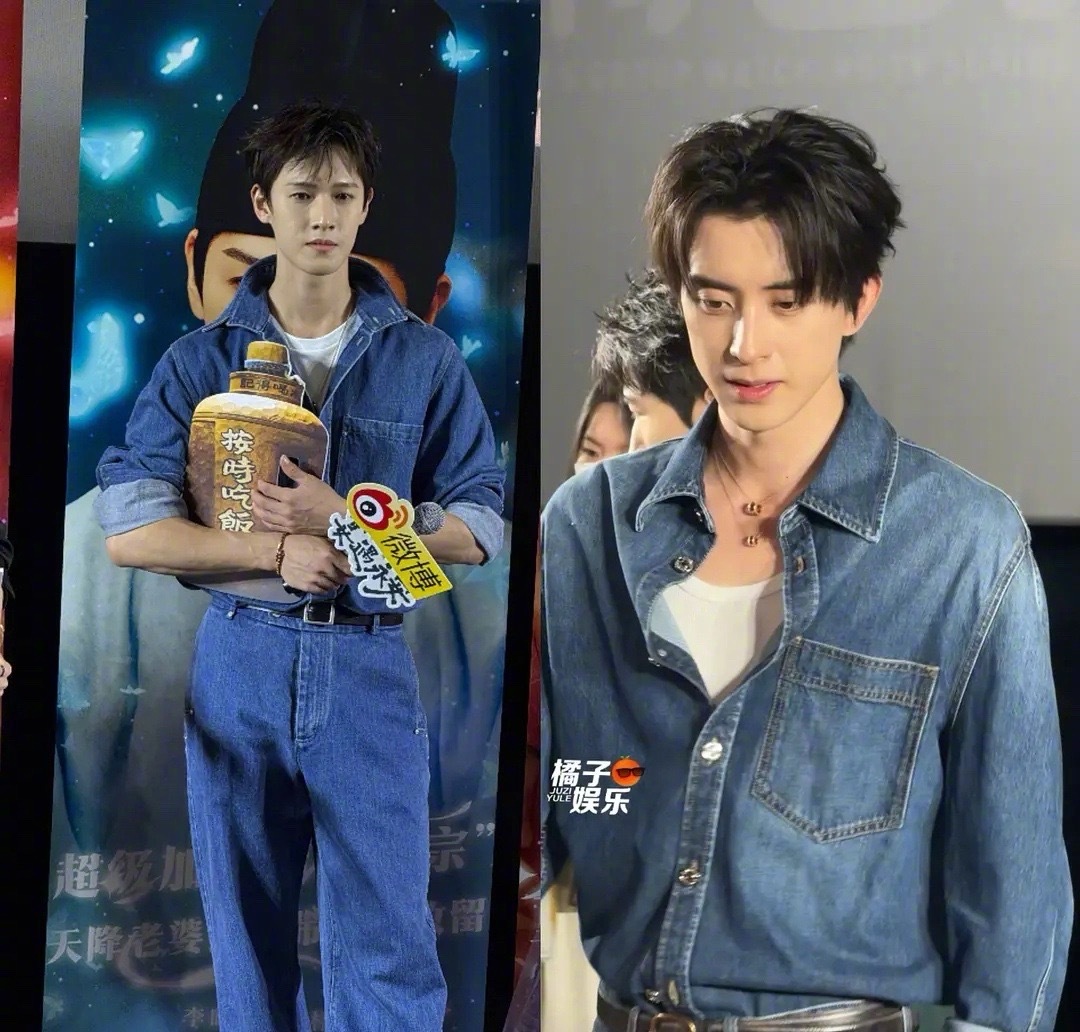 敖瑞鹏、李昀锐剧宣撞造型了,同款牛仔套装。