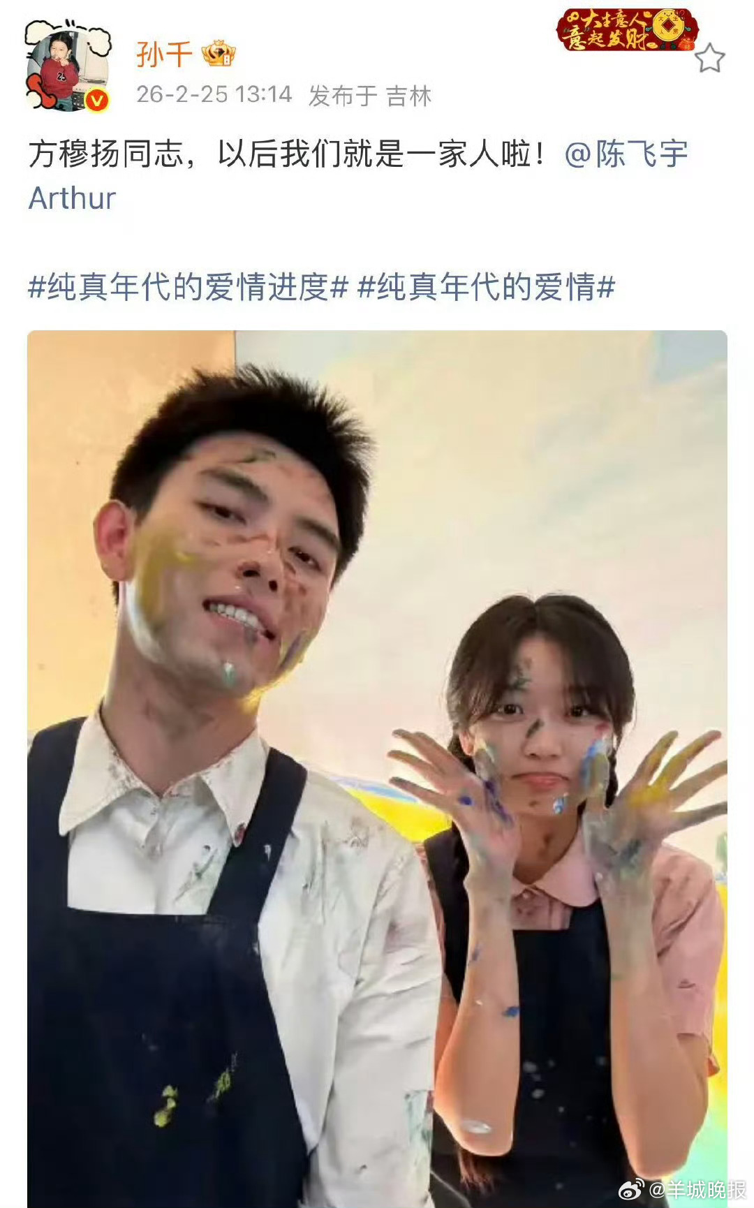 #陈飞宇孙千互晒合照##陈飞宇孙千卡点发合照# 2月25日,卡点13:14互晒合照!