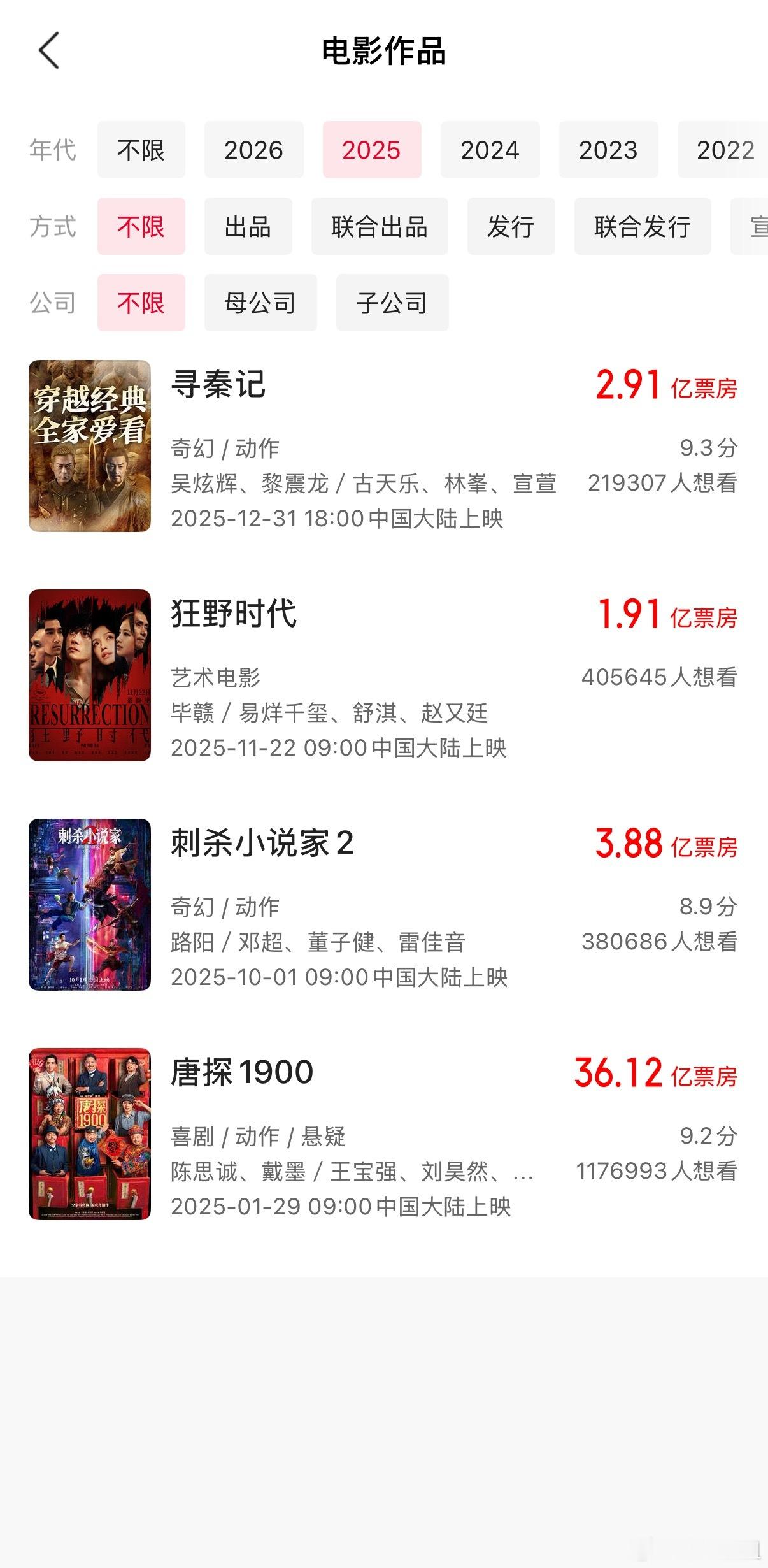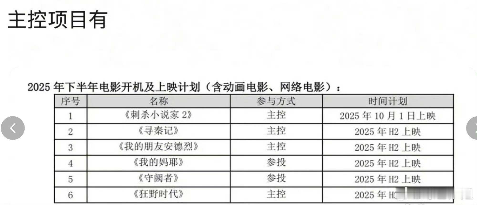 网传华策解散电影部门了,近两年参投的电影有《刺杀小说家2》《寻秦记》《狂野时代》《我的朋友安德烈》等华策参投电影华策2025年投资的电影华策解散电影部门
