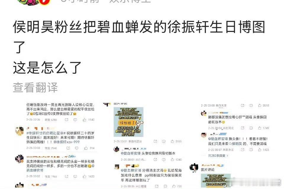 侯明昊粉丝把碧血蝉发的徐振轩庆生博给图了