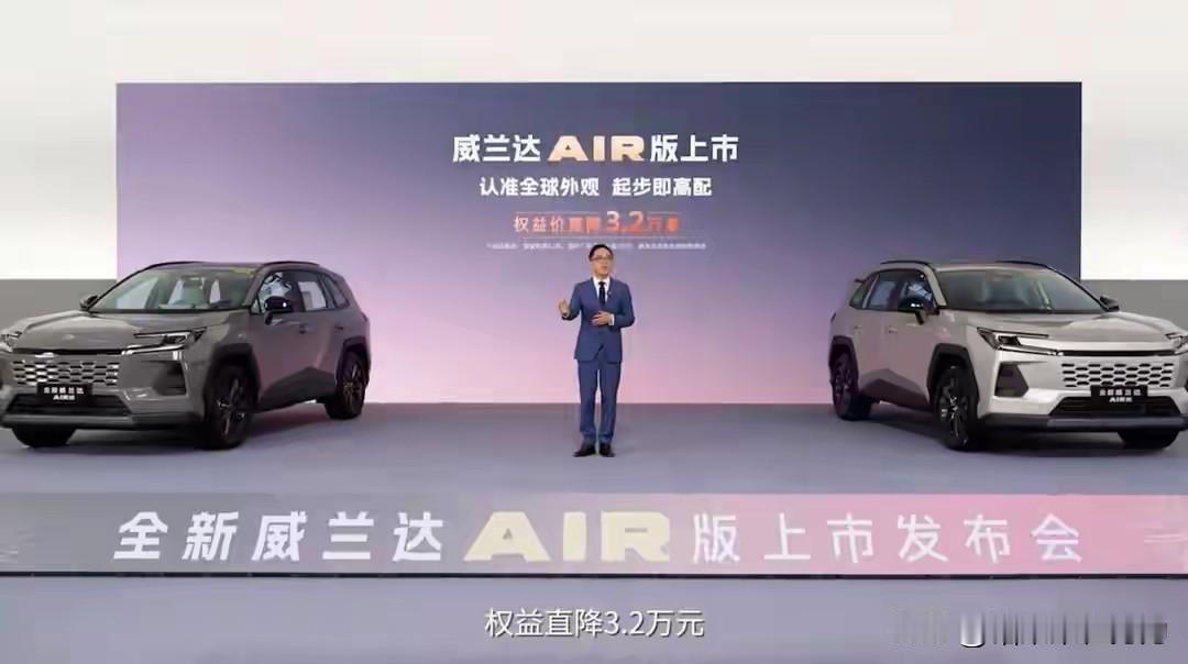 广汽丰田最近发布了威兰达AIR版的新购车政策,指导价16.98万元起,但真正有杀伤力的是那个“权益价”——13.78万就能开走。直降3万多,放在以前的丰田身上,确实少见。 先别急着看价格,咱们捋捋这车什么来头。去年11月刚换的新代,外形内饰都动了刀。前脸用的是RAV4海外基础版的风格,蜂窝状格栅配C字形大灯,中间黑色饰板连成一片,看着比老款精神不少。这次上市的AIR版虽然是入门款,但外观跟高配没啥区别,不会让你有“一看就是低配”的尴尬。 侧面线条还是硬朗那一挂,后视镜做了黑化处理,算是增加点运动感。车尾变化挺明显,尾灯细长条,里面是竖条光源,中间黑色饰条贯穿,还刻着“WILDLANDER”英文标,晚上辨识度够高。尺寸方面,车长4600mm,比老款短了65mm,但轴距还是2690mm没缩水——这意味着空间没变,该宽敞的还是宽敞,可能是为了更紧凑好开。 既然叫AIR版,定位就是拉低门槛,跟PRO版肯定要拉开差距。最直观的是中控屏从15.6寸缩到14寸,高通8155芯片也缺席了。另外像HUD抬显、副驾电调、全景天窗、360影像、自动变道辅助这些进阶功能,AIR版上确实没有。核心配置没砍——TSS 4.0智驾系统、后双叉臂悬架、主驾电调、50W无线快充、数字钥匙这些都是标配。说白了,丰田的思路很清晰:安全、好开、日常高频用的全给你,锦上添花的砍掉压成本。 动力还是老规矩,三种选择。2.0L自吸126kW,适合图省心的。2.0L混动144kW,市区代步轻快又省油,最推荐。2.5L混动174kW,动力更足,跑高速从容。油耗表现都不错,尤其是混动版,长期用下来能省不少油钱。 所以这一波操作,丰田算是想明白了。与其在配置上内卷,不如直接拉低门槛——13.78万买一台靠谱的合资SUV,三大件终身质保,核心配置没缩水,油耗还低。对于普通家庭来说,确实是个实在的选择。
