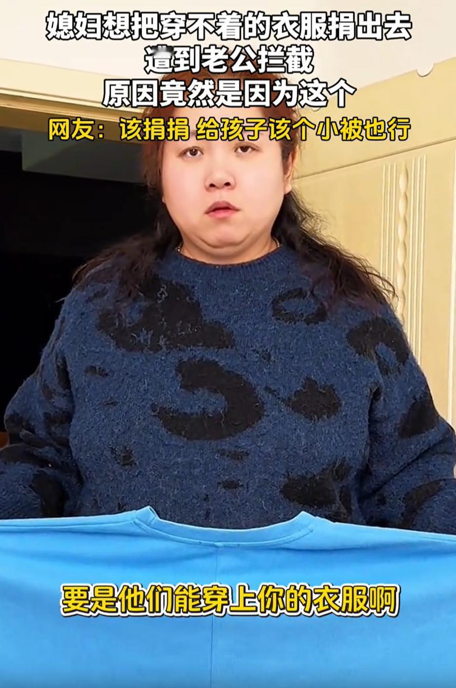 伤害性不高侮辱性极强!辽宁,女子在家里大扫除,翻出来一堆旧衣服。看着这些衣服,她心里琢磨着,直接扔了怪可惜的,不如做点好事捐出去。于是她就跑去跟老公商量 没想到她话音刚落,老公就给她泼了盆冷水,说你还是别捐了,不喜欢就直接扔垃圾桶吧。女子当时就懵了,心想这好好的衣服,干嘛要扔啊,捐给有需要的人不是挺好的吗? 接下来她老公说的话,那真是绝了。他慢悠悠地来了一句,人家要是能穿上你的衣服,那说明压根就没饿着 女士这才反应过来,合着老公是在拐着弯说她胖呢。她当场就急了,说你咋这么损呢 有网友调侃说,没事,该捐捐,这衣服穿不了,改改当被子用也行 不得不说,这网友也是没放过她。不过玩笑归玩笑,这事也能看出很多夫妻之间特有的相处模式。这位老公的话虽然损了点,但也透着一种熟人之间才敢开的玩笑劲儿 换做是外人,肯定得把话包装得漂漂亮亮的,什么衣服款式不太合适啦,捐赠标准比较严格啦,绝不会这么直来直去 虽然他嘴上不饶人,但说不定心里想的是,老婆的衣服还是留着自己处理比较好,不想让别人挑挑拣拣的。有时候男人表达关心的方式,就是这么别扭