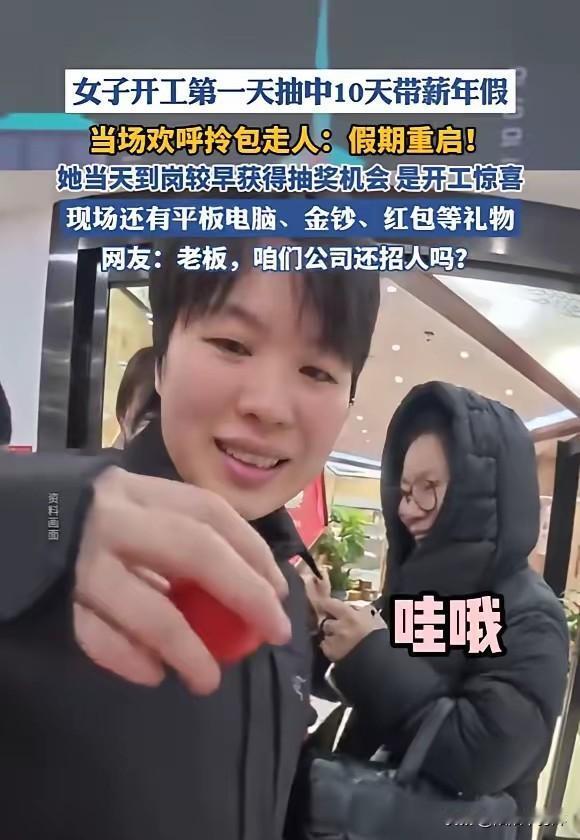 “太羡慕了!”2月24日,湖南长沙,一女子开工第一天,参加公司抽奖,直接抽中了10天带薪年假。她当场欢呼,拎包就走,同事们全是羡慕的眼光。网友们纷纷问:这家公司还招人吗? 这事是真的,发生在长沙一家做新媒体的小公司。老板说,开工抽奖是每年都搞的活动,奖品除了10天带薪假,还有平板、金钞、红包这些,就是想让大家收收心,别太抗拒上班。抽中大奖的姑娘当天到得早,符合额外抽奖的条件,不是内定的。 这事一出来,网上炸锅了。好多人追着问公司还缺不缺人,有人说“少给点工资都行”。也有人说这是老板在炒作,想蹭热度涨名气。不过公司老员工说,去年年会他们抽过“带薪撸猫一周”,前年抽过“老板替你上班一天”,这次抽奖不是第一次搞这种“反内卷”的事。 现在打工人最缺的就是休息。平时“996”“大小周”是常态,能正常休年假都算不错了,更别说突然多10天带薪假。这家公司这么干,说白了就是抓住了年轻人的痛点——大家要的不是画大饼,是真真切切的休息时间。这样一来,员工更愿意留下,外面的人也更想进来。 但也得说清楚,这种“神仙公司”不是谁都学得来。小公司本来就没多少钱,要是都学人家送10天年假,可能直接就倒闭了。普通打工人也别光羡慕,毕竟大多数公司还是要算成本的,过度羡慕只会让自己更闹心。 这事也提醒了大家,带薪休假不是奢侈品,是法律规定的权利。我国早就有《职工带薪年休假条例》,但很多公司还是不让休。长沙这家公司的做法,虽然是个例,但也给其他公司提了个醒:对员工好,别光说不练,得拿出实际行动。 到现在,这家公司的招聘邮箱已经收到上千封简历了。老板说会正常招人,不会因为热度就降低要求。对我们来说,与其羡慕别人的运气,不如多关注自己的权益,争取让自己的公司也能更人性化一点。 你开工第一天遇到过啥福利?你觉得公司最该给员工的是什么?评论区聊聊。 信息来源:《假期重启!女员工开工第一天抽中10天带薪年假,当场欢呼拎包走人》新民晚报