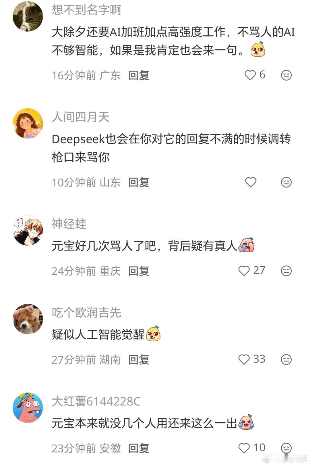 元宝骂人网友怀疑元宝背后是真人在回复