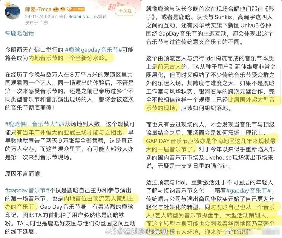 原来圈内专业人士是这么看鹿晗音乐节的,鹿晗再一次证明了他强大的号召力