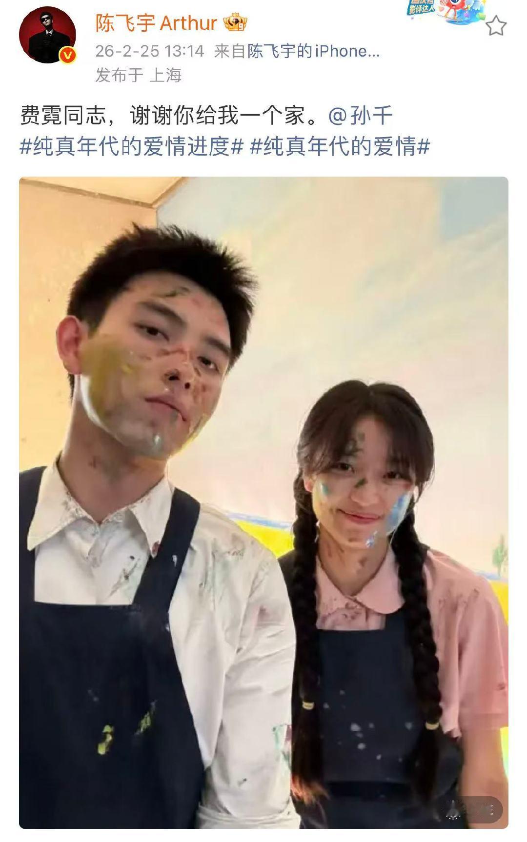 陈飞宇孙千互晒合照 陈飞宇孙千卡点发合照 2月25日,卡点13:14互晒合照!