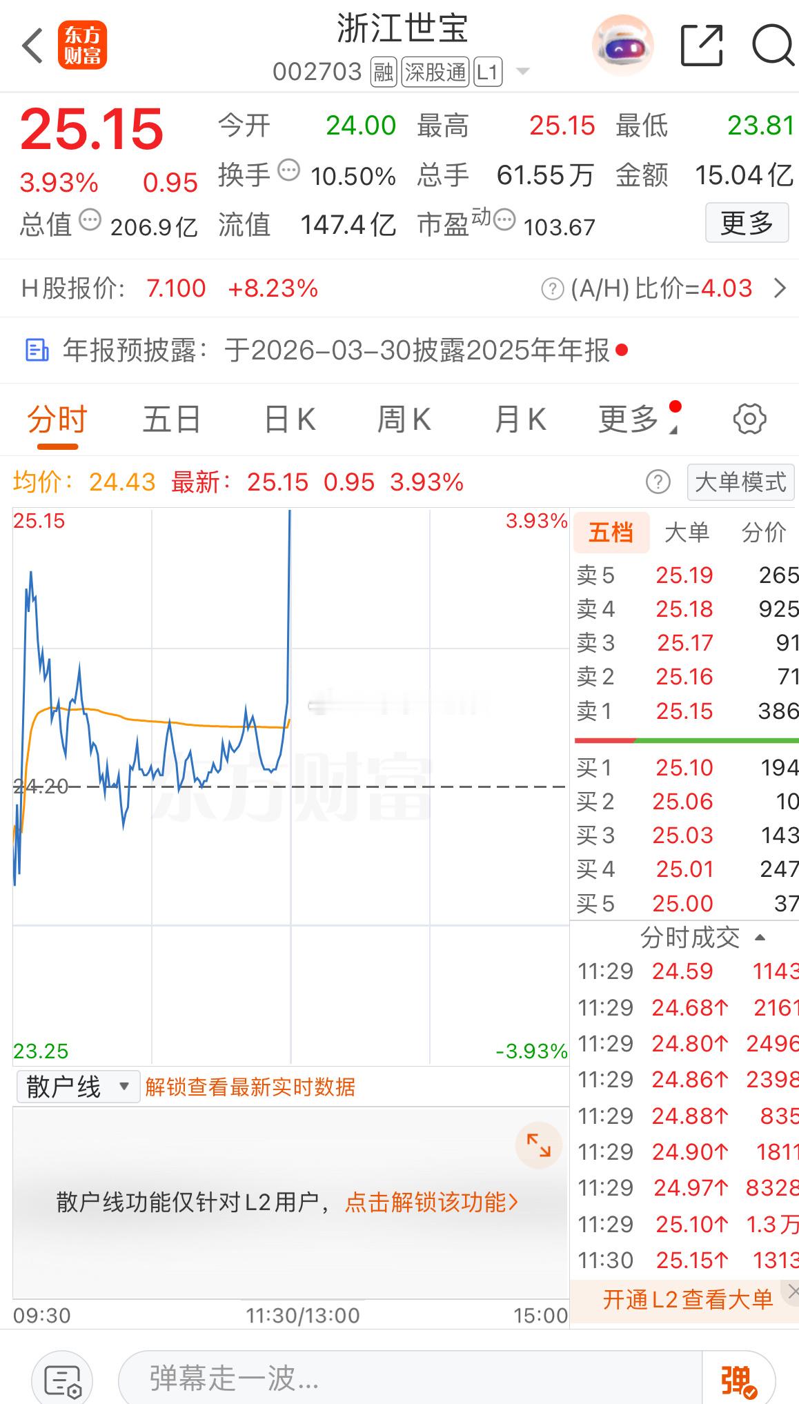 昨天早盘通知内线粉丝操作的浙江世宝 sz002703[股票] 起飞🛫️