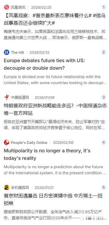 假如俄罗斯这次战败了,世界将会发生什么?不夸张的说,俄罗斯一旦被打败,中国接下来就会很头疼。 麻烦看官老爷们右上角点击一下“关注”,既方便您进行讨论和分享,又能给您带来更多优质的内容,感谢您的支持! 咱们今天聊个有点远、但也不是完全没影儿的事儿。当然,首先得声明,这只是一个基于地缘政治逻辑的推演,咱不盼着它发生,但得看懂这里面的门道。 假设一下,如果俄罗斯在俄乌冲突里不仅没达成目标,反而彻底打输了,甚至引发内部动荡,那这世界还真得变个天。不夸张地说,莫斯科如果倒下,咱们北边这个大个子一旦趴窝,接下来的日子,咱们确实会挺头疼的。 首先,最直接的就是俄罗斯国内的核威慑这张牌,可能就没那么灵了。普京这些年能把桌子拍得震天响,靠的就是那几千枚核弹头撑着。可现在的情况是啥?仗打了四年,俄罗斯的经济就像个漏气的皮球,油气收入暴跌,财政压力巨大。一旦战败,内部那些憋着劲的反对派、地方势力,肯定得冒出来算总账。克里姆林宫的金顶看着还在发光,底下地基可能已经松动了。虽然普京最近又在强调核力量优先,但那更像是给大伙儿打气,真有那心思,但未必有以前那个实力了。到时候,内部权力一洗牌,谁还有心思跟咱们搞什么战略协作?光处理自家那点烂摊子就够呛了。 再说欧洲那边,那可真是逮着机会了。这几年东欧那帮国家,像波兰、罗马尼亚,本来就怕俄罗斯怕得要死,天天喊着要美国驻军。要是俄罗斯垮了,他们不得把整个黑海到东欧平原全塞进北约的口袋里?以前北约东扩还遮遮掩掩,俄罗斯要是败了,那真是连窗户纸都不用捅破了。欧盟和美国本来因为贸易啊、军费啊吵得不可开交,这下好了,外部威胁一解除或者说是“被彻底压制”,内部矛盾立马靠边站,跨大西洋联盟反而因为“分赃”或者“巩固胜利果实”绑得更紧。这对咱们来说,绝对是个坏消息,因为这意味着美国后院彻底安稳了。 美国一旦从欧洲那个泥潭里拔出腿来,你想他会干啥?特朗普那帮人早就把话挑明了,2025年底出的那份《国家安全战略报告》,直接把亚洲定义成“美国优先”的经济棋盘,核心就俩词儿:跟中国脱钩、搞高科技封锁。以前他还得两头顾,一边盯着乌克兰的弹药够不够,一边在南海晃悠。要是俄罗斯没了威胁,美国就能把所有航母、所有制裁的大棒,全都集中到亚太。他会逼着日本、韩国、澳大利亚这些小弟不仅多交保护费,还得冲到一线去当马前卒。到时候,咱们家门口从东海到南海,那可就真是“群狼环伺”了。 还有一个挺要命的事儿,就是国际上的“人心”。现在很多发展中国家,比如印度、巴西、南非,他们为啥敢在美俄之间玩平衡?不就是因为这世界还是“多极”的嘛,跟着谁都有肉吃。可要是俄罗斯这么个大国标杆“啪叽”一下倒了,那些所谓的“全球南方”国家心里就得打鼓了:原来跟美国对着干真会没命啊?那算了,还是赶紧向西方靠拢表忠心吧。这种多米诺骨牌效应一出来,咱们在国际上拉朋友圈、搞金砖合作、推一带一路,阻力就会大很多。原来大家觉得跟着中俄混有前途,现在一看俄罗斯不行了,立马转向,咱们的外交空间自然就被压缩了。 最后落到咱们自己身上,那就是实实在在的利益受损。中俄这些年背靠背,不是说着玩的。俄罗斯那根大管子——“西伯利亚力量”天然气管道,呼呼地往咱们这送气,价格还实惠。要是俄罗斯内部乱了,或者新上台的亲西方政府直接翻脸,这条能源大动脉万一被卡了脖子,咱们的能源安全立马就得亮红灯。还有跨境物流、本币结算这些事儿,本来搞得好好的,想去美元化,结果俄罗斯卢布先成废纸了,那咱们的金融风险立马就蹿上来了。 所以说,俄罗斯这场仗,看着是在乌克兰打,实际上牵动的是全球的筋骨。咱们当然希望和平,希望邻居都稳稳当当的。但万一真到了那一步,咱们也得看清,这不仅仅是别人的家务事,而是实实在在会刮到咱们家门口的暴风雨。提前做好能源备份、科技突围、还有内需市场的准备,这才是最要紧的。