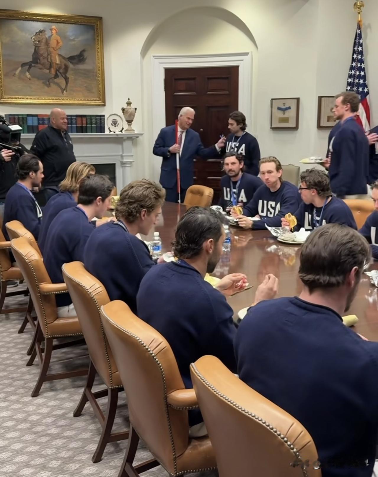 美國男子冰球隊奪冠後到訪白宮。 Brought to you courtesy