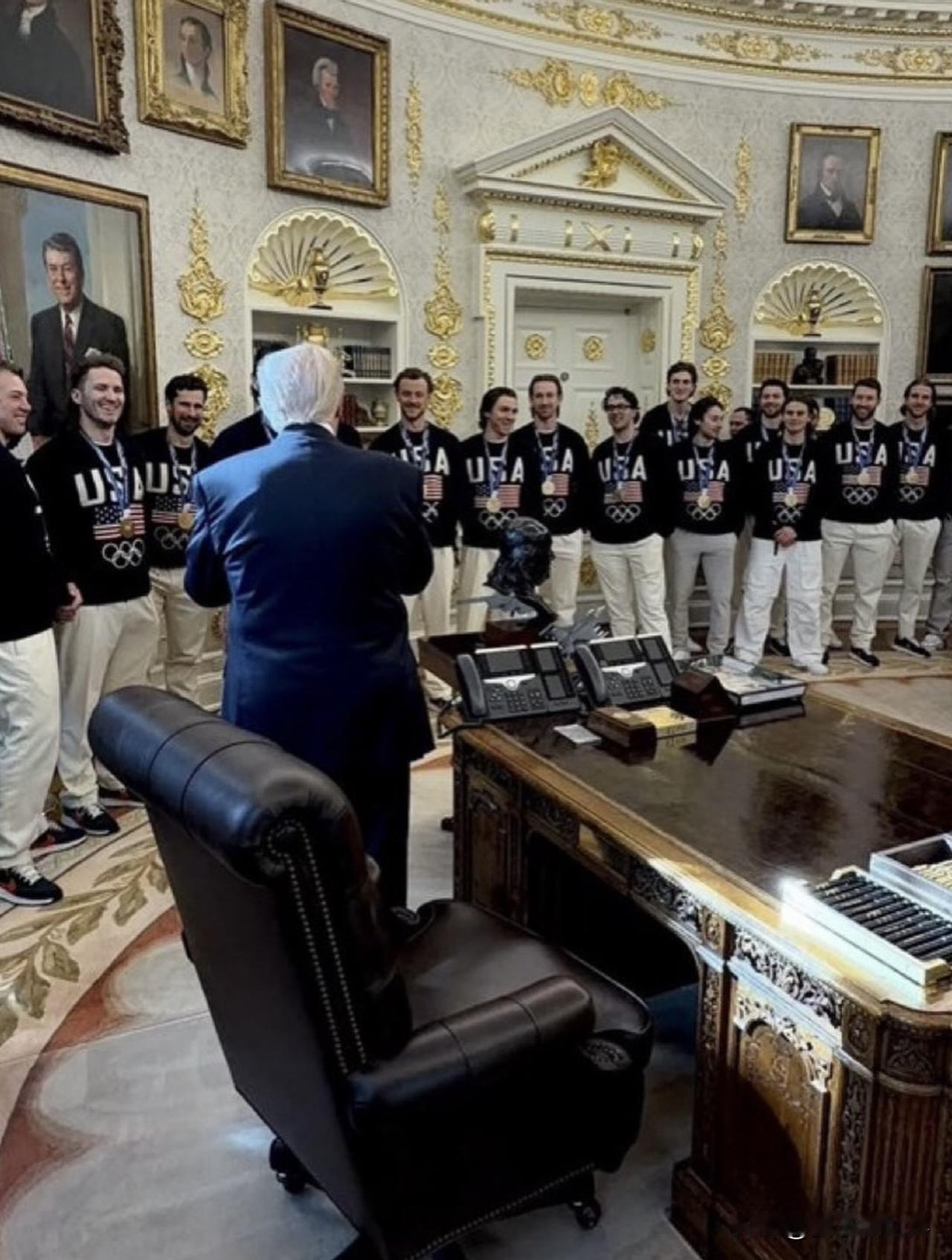 美國男子冰球隊奪冠後到訪白宮。 Broughttoyoucourtesy