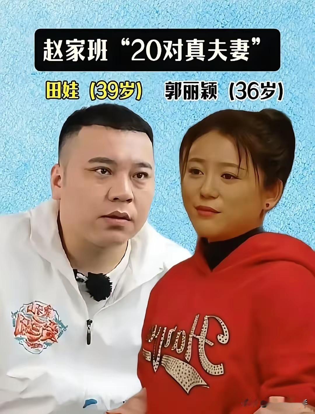 赵家班的真夫妻,台上搭档台下夫妻,恩爱得很 王小利演过《乡村爱情》里的刘能,那个结结巴巴、小心眼的刘能,让多少观众笑破肚皮。他是赵本山的徒弟,二人转演员出身,功夫了得。 王小利是黑龙江人,今年55岁。他之前有过一段婚姻,前妻也是二人转演员,生了个儿子。后来离了,遇到李琳,俩人走到一起。 李琳是辽宁人,今年44岁。她也是二人转演员,在《乡村爱情》里演谢兰,就是刘能的媳妇。 田娃是赵本山的徒弟,今年39岁。他演过《乡村爱情》里的王大拿的司机,也上过春晚演小品。他是二人转演员,唱得好,演得也好。 田娃是辽宁人,从小就学二人转。他媳妇郭丽颖,今年36岁,也是二人转演员。俩人是同行,一起学艺,一起演出,慢慢走到了一起。 田娃和郭丽颖结婚十几年了,生了两个孩子。