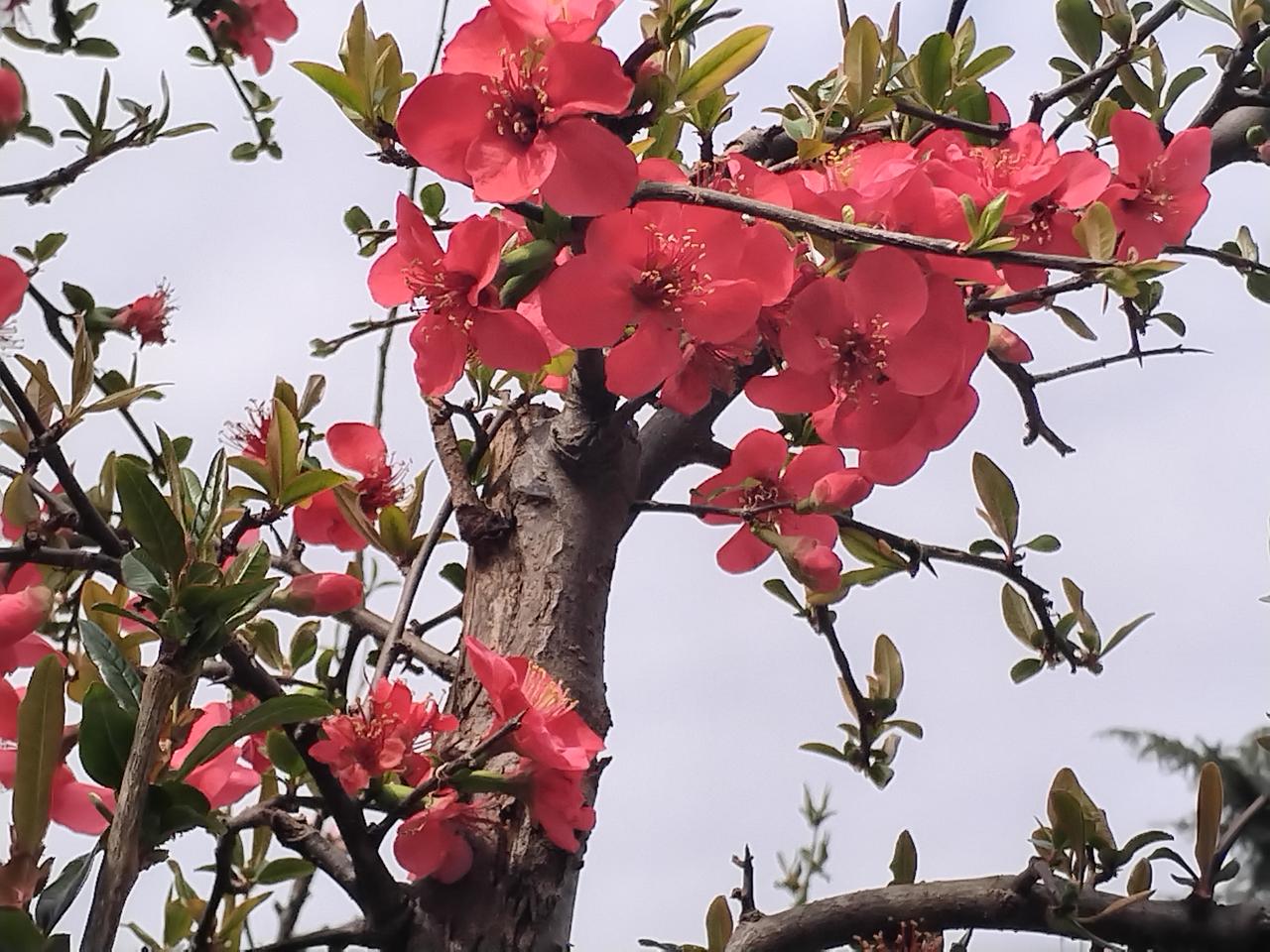 正月初九 游览绵阳市富乐山公园 春光铺开了柔软的信笺 路旁的海棠花,用浪漫的笔触肆意渲染着 一团团 一簇簇 红的像火 粉的似霞 点燃了眼眸 醉了我心田 慕名而来的游人 对满园遍野的海棠花 高山般的仰望 红色让人陶醉 粉色让人痴迷 犹如炽热的爱情 在季节的循环中荡漾不止 马年春光明媚 宜人的春风轻轻的拂过我们的笑脸 春天来了 百花绽放 一颗颗海棠紧密相连 一树树海棠争奇斗艳 一群群蜜蜂落满枝头 一声声鸟语醉人心胸