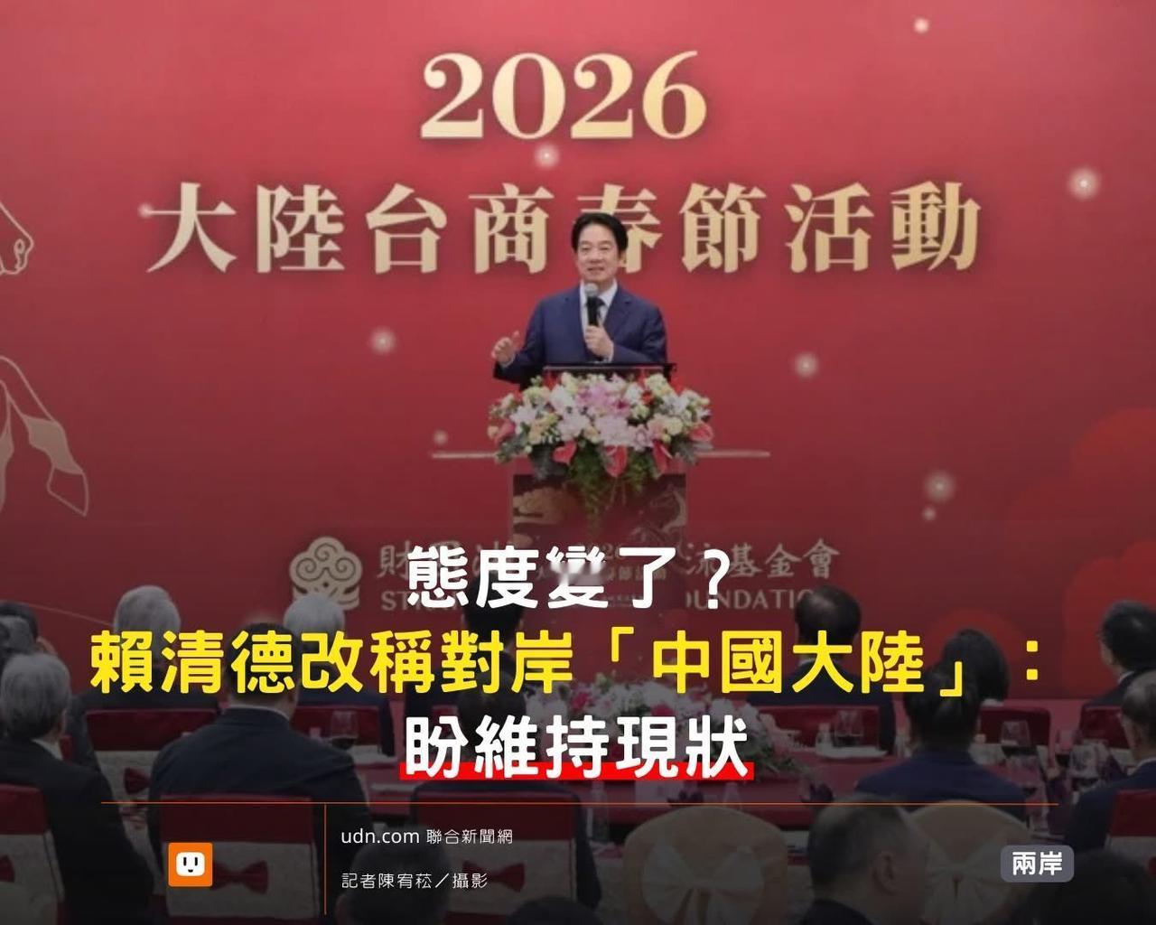 有人信它的鬼话吗? 据台媒:美日代理的台独头目赖清德昨日参加“海基会”搞的“大陆台商春节活动”时,多次以“中国大陆”称呼对岸,它指自己上台后不止一次公开声明,两岸共同敌人是天灾地变、传染病,共同目标是增进两岸人民福祉,“我们希望交流合作,让两岸能够朝向和平共荣的方向走”。 补充:去年3月19日,赖清德将中国大陆定义为“境外敌对势力”。