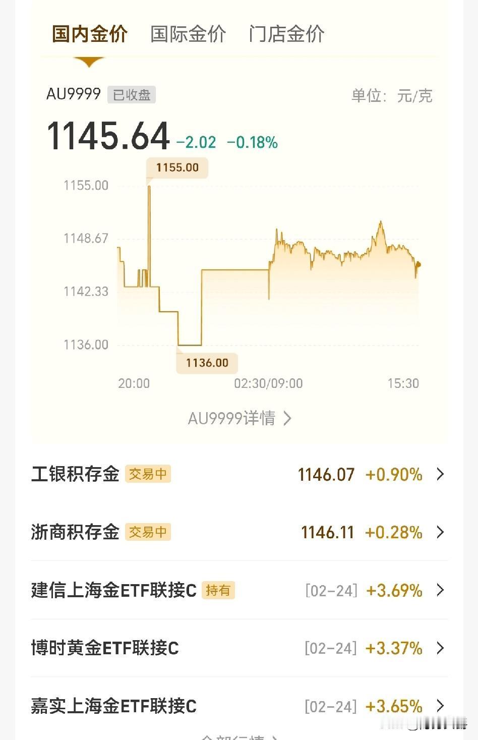 我说的没错吧! 今天黄金价格就是微跌收盘。 如果你每天去观察黄金价格,基本上对价格走向都能预感个八九不离十。就像带孩子一样,天天都是你带,孩子啥时哭,啥时睡你都能判断个差不多。 当然大跳水是无法预测的,大家都知道飙升太猛太高就会跳水,但具体不知道在哪一天。 其实我就没打算买黄金赚钱,我就弄几千扔里面做个体验金,好玩儿。 这个玩法也是被支付宝勾引下水的,支付宝送了我1.37元的体验金,过了两天变成1.53了,然后我就又转了3000块进去,纯属加大一档,增强体验感。