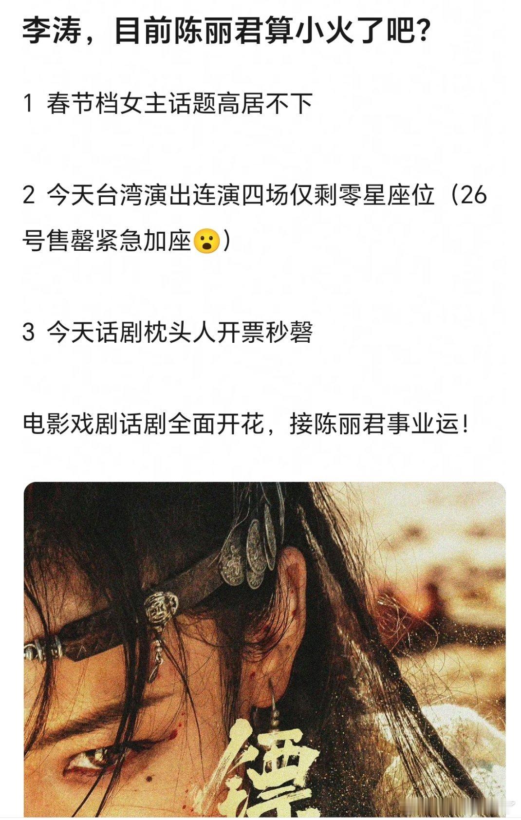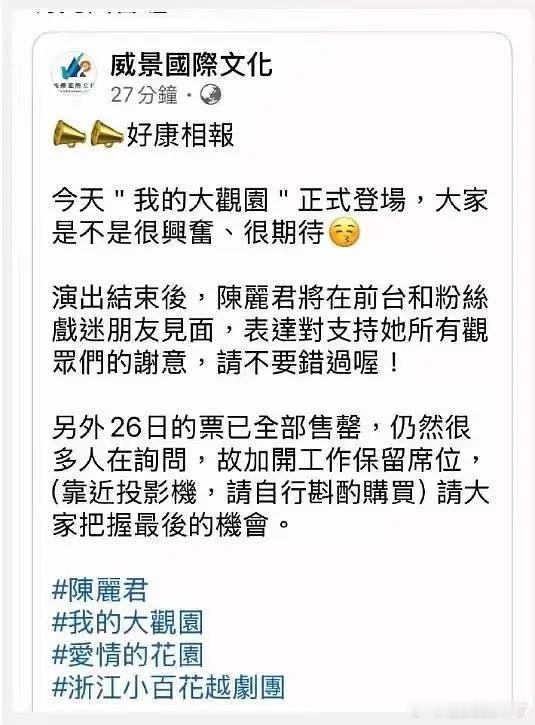 我去,之前杂志1050w,现在话剧也售罄了?陈丽君好牛的号召力