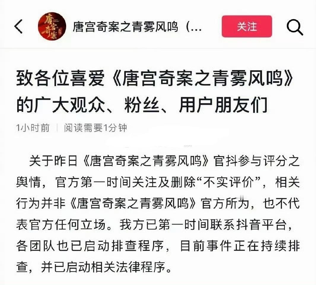 《唐宫奇案》:相关行为非官方所为,也不代表官方任何立场,已联系平台启动排查程序。