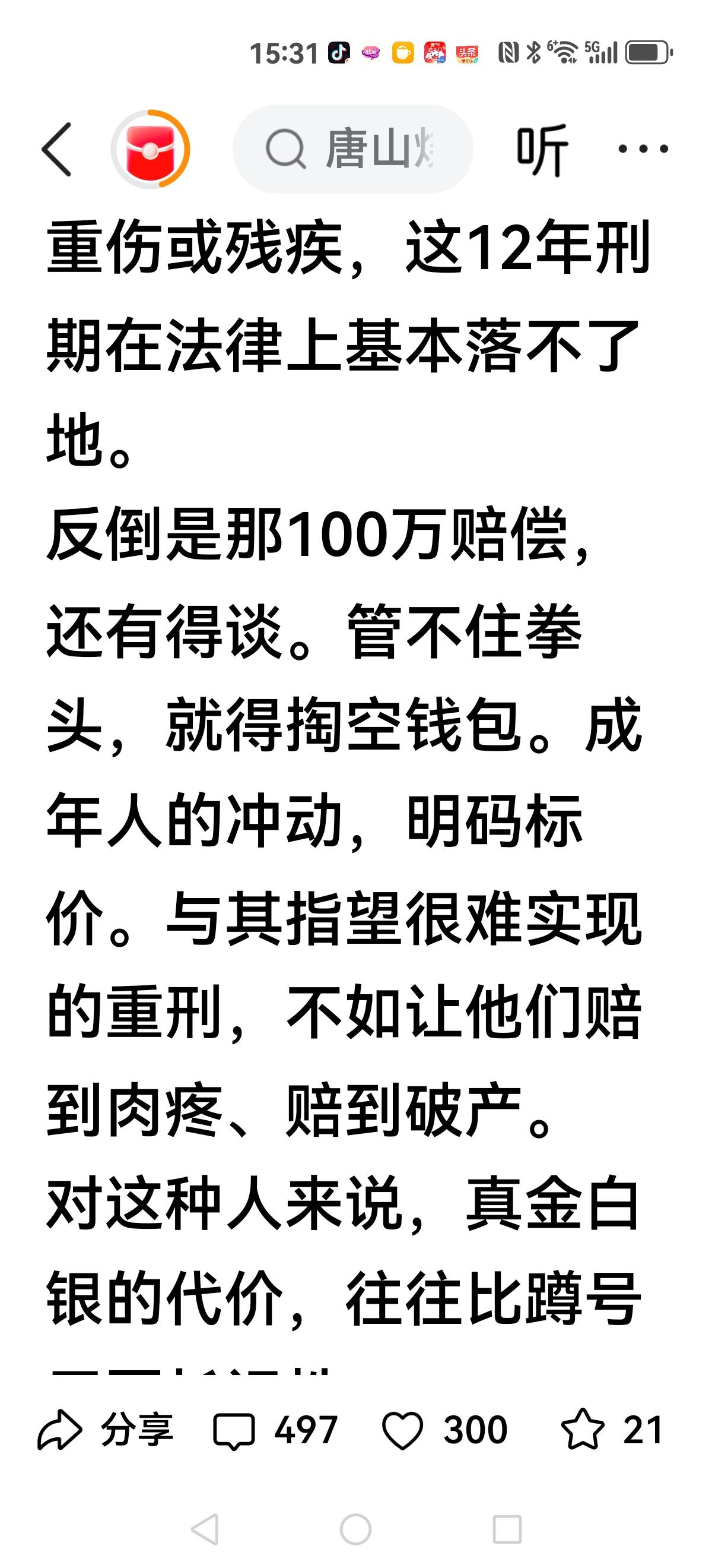 【网上又开始大争论】 平顶山郏县茨芭镇打人事件,到底重判好,还是赔偿多好? 其实,这都是需要法律依据,但验伤是轻度二级,这显然有轻判的迹象。 是不是罚款多就好了?让对方肉疼? 这里有个原则性司法问题,国外与国内有着不同法系的根本原因。 国内倾向于伤情鉴定的结果,国外却注重这种行为的恶果。 从想杜绝这种事情,或者阻止出拳头的手,显然重判,但不是随意判,而是这种行为导致恶劣影响。 如果重罚,等于用钱解决问题,后果不堪设想。