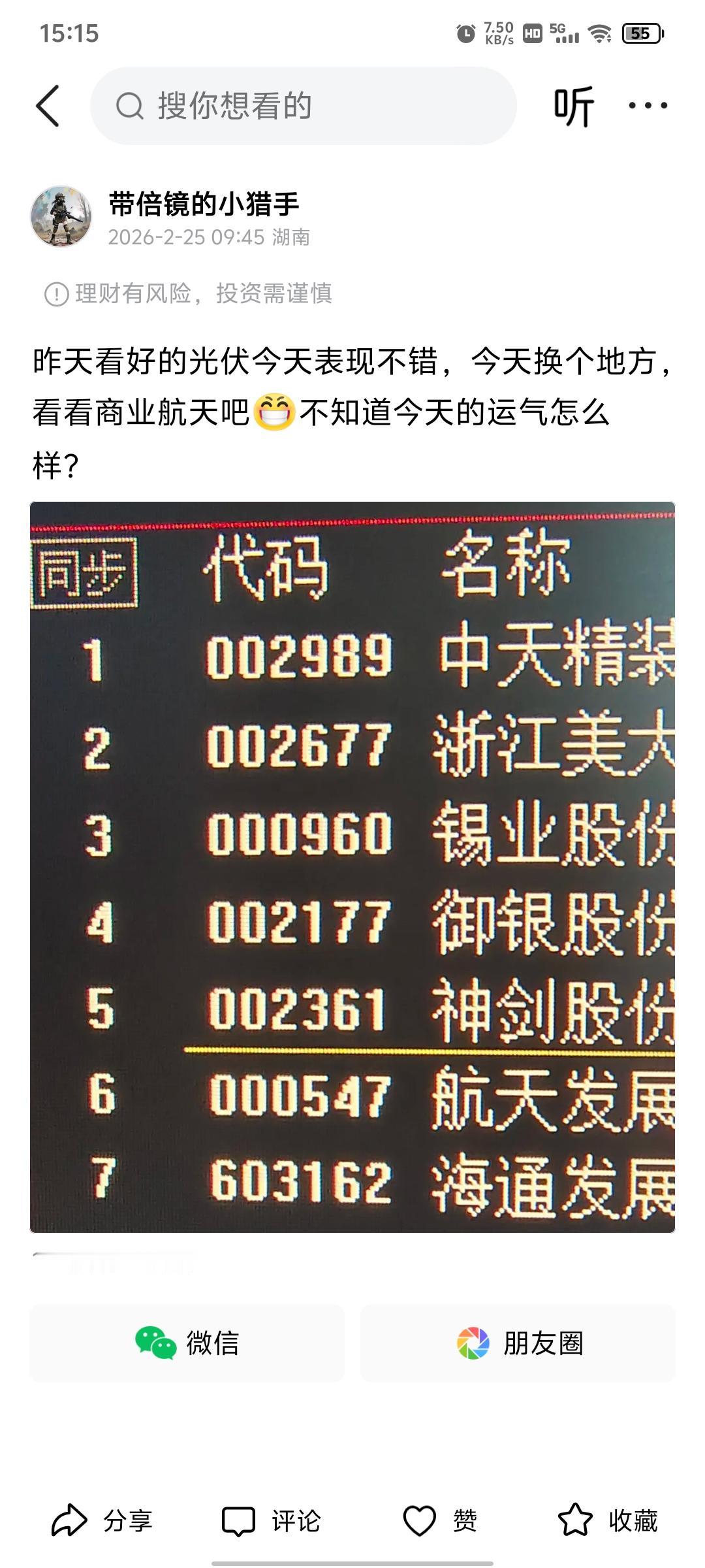收盘,休息[呲牙]今天水平有点不尽人意[笑哭]看好的几个目标只有两个板了,虽然另外三个都上板了但是没封住,看样子还是要不断磨练自己啊 也是因为自己已经有一带一路和光伏的先手了,因为年前最后一个交易日我就在光伏里面了,估摸着差不多要见好就收了,所以今天就侧重了航天和人工智能,希望明天这两个赛道有惊喜吧。 算力的尽头是电力,电力的尽头是光伏,一波走完了,估计下一波又要从算力开始了,踩对节奏才能有美妙的音乐。