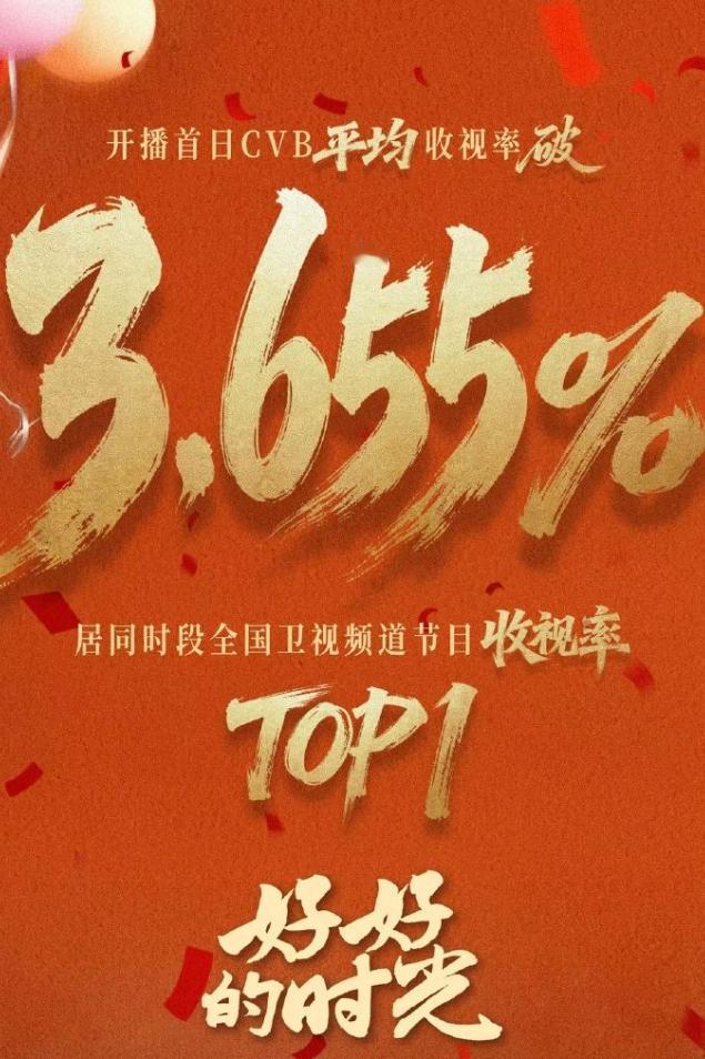 梅婷《好好的时光》首播收视破3%! 梅婷主演的年代剧《好好的时光》首播央一收视率3.655%,上部剧《太平年》CVB收视率最高的一天破3.1%,而且只有2天破3%,平均收视率应该低于2.8%,《好好的时光》有直接冲年三的架势,央一去年的CVB年三是白鹿的《北上》,收视率3.615%。