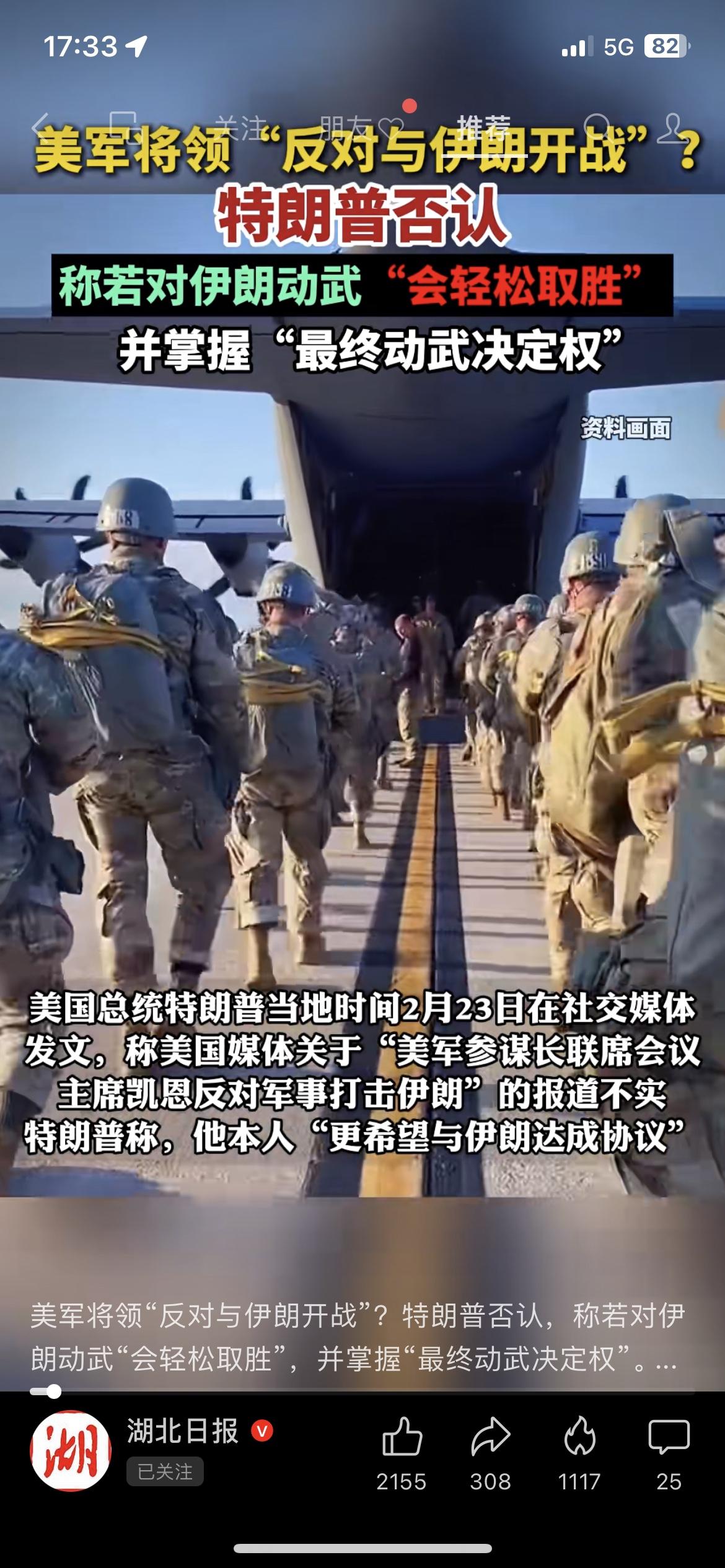 美伊局势又紧张了。 有媒体称美军高层反对对伊朗动武,特朗普直接公开否认。 他表示:如果真要行动,我们会轻松取胜。 并且强调一句话:是否动武,最终决定权在我。 一边是强硬表态,一边是外界对战争风险的担忧。 现在局势,完全进入高度博弈状态。 咱普通人不用过度恐慌,但要留心。 国际局势一紧张,油价、金价、股市都会跟着波动。 这几天手里有相关板块的,心态一定要稳。 特朗普 美伊局势
