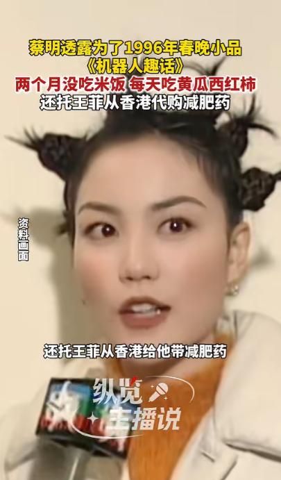 蔡明:“我1996年春晚演机器人的时候,我两个月没有吃一粒米饭,每天就吃黄瓜和西红柿,还让王菲从香港给我带减肥药,因为我们都不知道什么是机器人,就觉得机器人身材应该很好,所以我就要减肥。” 说起春晚舞台上的经典机器人形象,很多人第一时间都会想到蔡明在 1996 年带来的《机器人趣话》,一身利落的银色紧身衣,搭配机械感十足的肢体动作,还有自带趣味的台词,让这个角色成了几代人除夕夜的难忘回忆。 很少有人知道,这个活灵活现的机器人角色背后,藏着蔡明长达两个月的极致付出,最近她在访谈中聊起这段往事,也让大家看到了经典作品背后不为人知的细节。 1996 年的春晚舞台,还没有如今成熟的特效技术,人工智能和机器人对大众来说更是完全陌生的科幻概念,没有真实的参考样本,也没有专业的角色建模,整个创作团队只能靠着对 “机器人” 的想象去打磨角色。 在当时的认知里,机器人不该有人类的柔软与赘肉,应该是线条笔直、身形纤细、没有多余弧度的精致模样,而要把这个抽象的想象变成舞台上的真实形象,最基础也最关键的一步,就是从身形上贴合角色设定。 春晚的镜头有着严苛的上镜效果,一点点多余的赘肉都会被无限放大,为了让角色呈现出最完美的状态,蔡明当即决定用最直接的方式调整身形,开启了一场为期两个月的极限瘦身。 在那个物资逐渐丰富的年代,米饭是家家户户餐桌上的主食,也是日常能量的主要来源,可蔡明为了瘦身,直接把主食从饮食里彻底剔除,整整两个月的时间,没有吃过一粒米饭。 这种对自己的严苛,放在当下都很少有人能坚持,更何况是在工作强度极大的春晚筹备期。每天的饮食简单到极致,只有黄瓜和西红柿两种食物。 没有油盐调味,没有配菜搭配,饿了就生吃黄瓜,渴了就吃几颗西红柿,日复一日的清淡饮食,没有任何解馋的空间,所有的坚持都只为了让身体快速瘦下来,褪去多余的脂肪,打造出机器人该有的利落线条。 筹备小品的日子里,蔡明一边要反复打磨机器人的机械动作、练习独特的语调,一边要严格控制饮食,高强度的排练加上极低的热量摄入,身体的疲惫感可想而知。 为了让瘦身效果更理想,她还想到了借助当时更前沿的减肥产品,90 年代的内地,减肥产品的款式十分有限,效果也不尽如人意,而香港作为时尚前沿,有着更多新式的选择。 恰好蔡明和王菲是关系要好的朋友,得知王菲常在香港,她便特意托对方从香港帮忙代购减肥药。 这款从香港带回的减肥药包装十分朴素。 看起来就像普通的感冒冲剂,不起眼到被身边的同事误当成烟灰缸使用,现在听来是充满趣味的小插曲,却也能真切感受到,当时为了贴近角色,蔡明没有丝毫敷衍,把能做到的细节都做到了极致。 长达两个月的坚持,换来了肉眼可见的效果,蔡明的腰围瘦到了一尺六,整个人的身形变得挺拔纤细,穿上为角色量身定制的银色紧身演出服,完美契合了大家对机器人外形的想象。 除了身形上的打磨,角色的小细节也藏着巧思,头顶标志性的机器人天线,没有精致的道具,只是用半截筷子缠绕银色胶布,再用发卡固定在头上,简陋的道具搭配贴合的身形,还有惟妙惟肖的表演,让这个机器人角色瞬间立住了。 春晚直播的当天,还有着不为人知的小考验,为了小品的出场效果,蔡明需要提前很长时间蹲在道具箱子里,长时间保持蜷缩的姿势,再加上两个月空腹瘦身带来的低血糖,让她在直播出场时险些晕倒。 可即便身体出现不适,她也没有丝毫慌乱,靠着毅力稳住状态,精准完成每一个动作、每一句台词,把最完美的表演呈现在全国观众面前,没有出现任何失误。 这个筹备时拼尽全力的小品,最终成了春晚舞台上的经典之作,“你们人类真虚伪” 的台词被观众熟记,机器人的形象也成了初代荧幕机器人的代表,三十年来被反复提及,成了春晚小品史上的亮眼一笔。 没有华丽的特效加持,没有专业的外形指导,全靠演员对角色的敬畏和极致的付出,把一个凭空想象的角色,演成了深入人心的经典。 蔡明身为家喻户晓的喜剧演员,为了演出机器人的神韵做出的牺牲不可谓是不敬业,一晃三十年过去,到了 2026 年,全球仿生机器人的品类已经突破了一千种。 舞台上的机器人能精准模仿人类的微表情,甚至能和演员实时互动,蔡明今年再站上春晚舞台,看着身边能灵活眨眼、摆手的仿生机器人,总笑着跟工作人员调侃。 这些老一辈艺人把角色的需求放在首位,用最朴素的努力去打磨每一个细节,不追求捷径,不敷衍了事。 也正是这份纯粹的执着,才让一个个经典角色跨越时光,直到今天依旧能打动观众,让大家在回忆起那个除夕夜时,依旧能感受到舞台带来的温暖与惊喜。 对于这件事,您有什么想说的吗?欢迎评论区留言讨论。 信源:纵览新闻2026-02-22——《蔡明为演好机器人两个月没吃米饭,还托王菲从香港代购减肥药。》