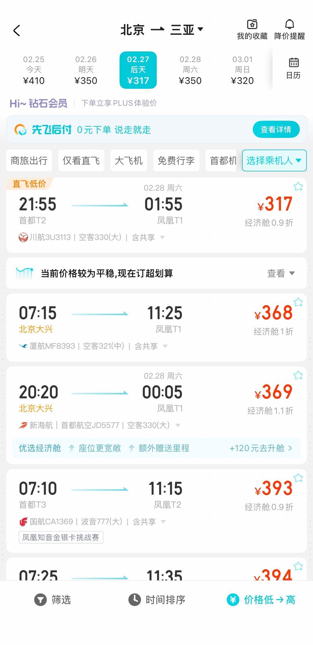 #错峰游的人享受到了骨折价#【春节后有人开启“错峰游”模式 北京飞三亚机票低至320元左右】#北京飞三亚机票低至320元# 长达9天的“史上最长”春节假期已经结束,大多数人已经回到了工作岗位。不过,记者注意到,也有一些上班族利用调休、年假等方式,选择在春节假期结束后的这段时间采用“错峰游”的方式出行或者休假。这种错峰的方式能够享受到“骨折价”的实惠。2月25日,记者注意到,以北京到三亚方向为例,最近几天可以买到300元出头的直飞机票,而在春节假期前后,该线路的机票价格普遍超千元。#机票酒店电影票都降了#