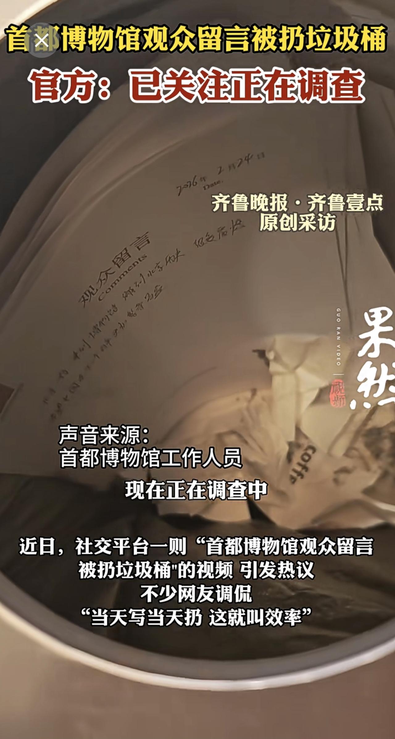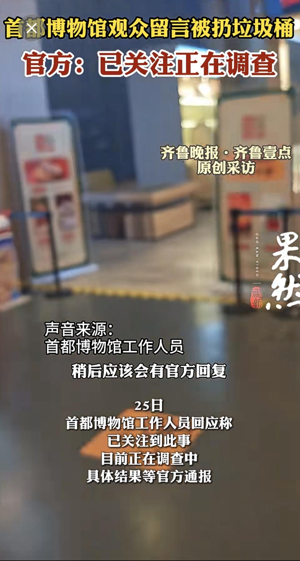 观众留言当天写当天扔?首都博物馆:已关注正在调查