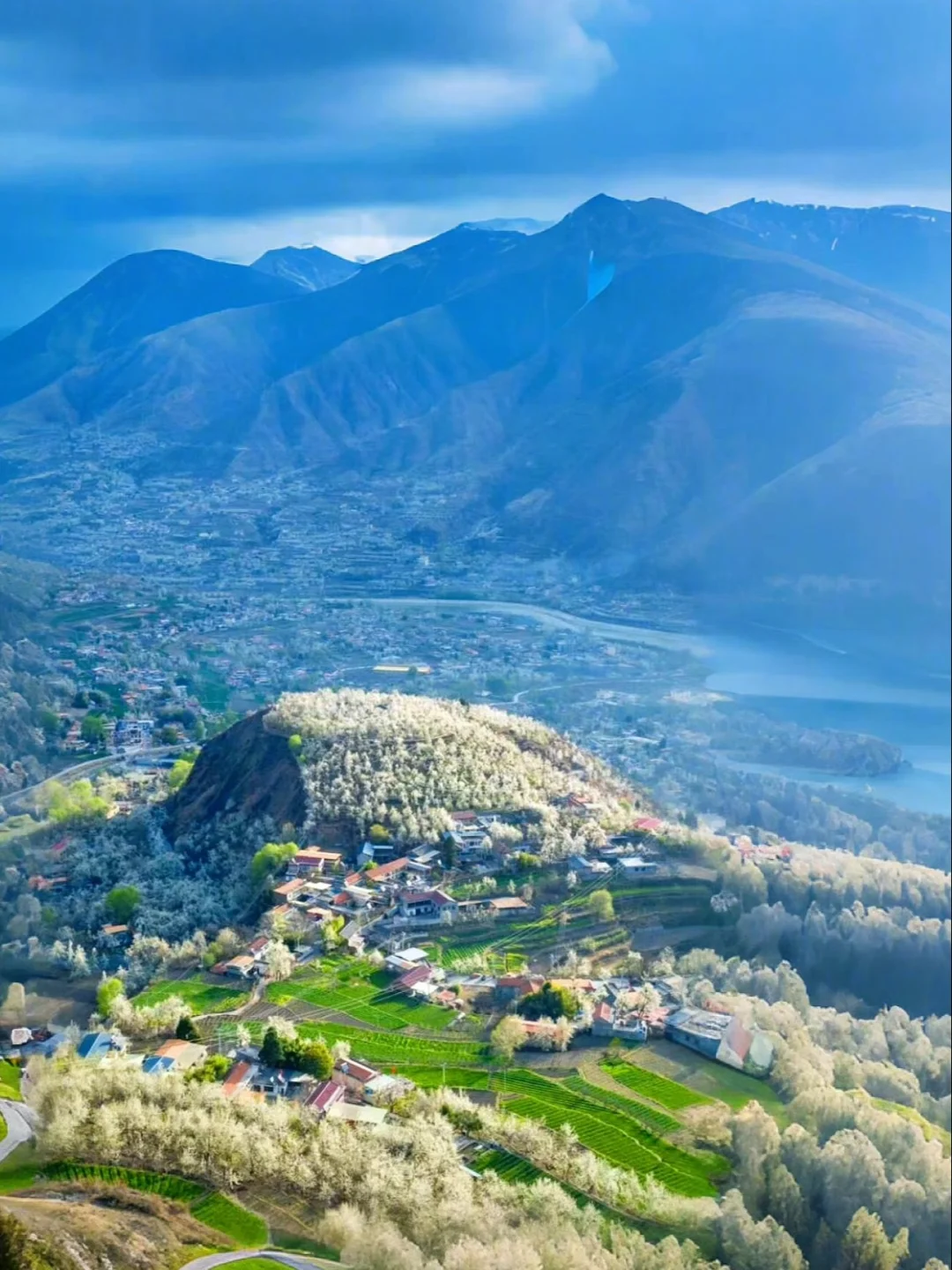 百余公里河谷被雪白花海覆盖,雪山为幕、藏寨为衬,堪称雪域高原最大梨花奇景,看完直接沦陷!