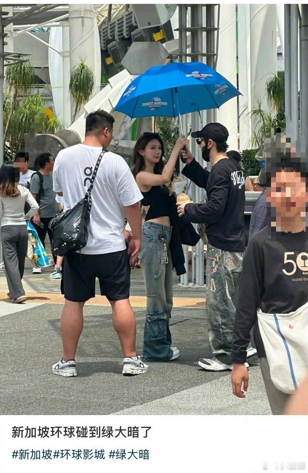 黄晓明同游女子疑似新人歌手胡冉儿 黄晓明还贴心为女生打伞~