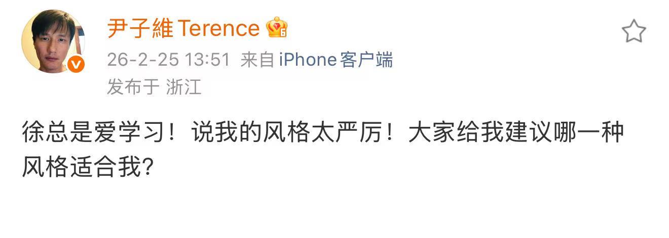 尹子维和徐冬冬争执原因尹子维徐冬冬竟然是因为学英语吵起来的,徐冬冬说尹子维的“风格太严厉”还挺爱学习的就是说