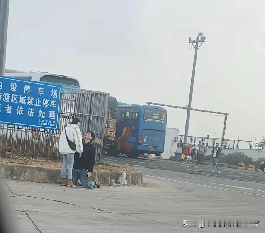 这女孩这辈子都不会得到他了 在新海港码头,一个男生跪在地上,仰望着面前的女生,眼神里全是不舍和哀求。女生抱着粉色U型枕,最后抱了抱他,然后转身就跑,头也不回。 男生愣在原地,慢慢站起来,眼神空洞地往前走,像丢了魂一样。旁边的路人都在拍,有人说“挺深情的”,可深情在现实面前,有时候一文不值。 有人说:“从他往前走那一刻起,这女孩这辈子都得不到他了。”也有人说:“当年我也想跪,现在想想,真跪了,我现在就把自己腿砍了。” 爱到卑微,换不来真心,只会换来践踏。你可以为爱情低头,但不能为爱情下跪。当你把尊严踩在脚下,就别怪别人把你当垃圾。 这一跪,跪的是青春,是执念,也是最后一次告别。从此以后,他再也不会为谁这样了。