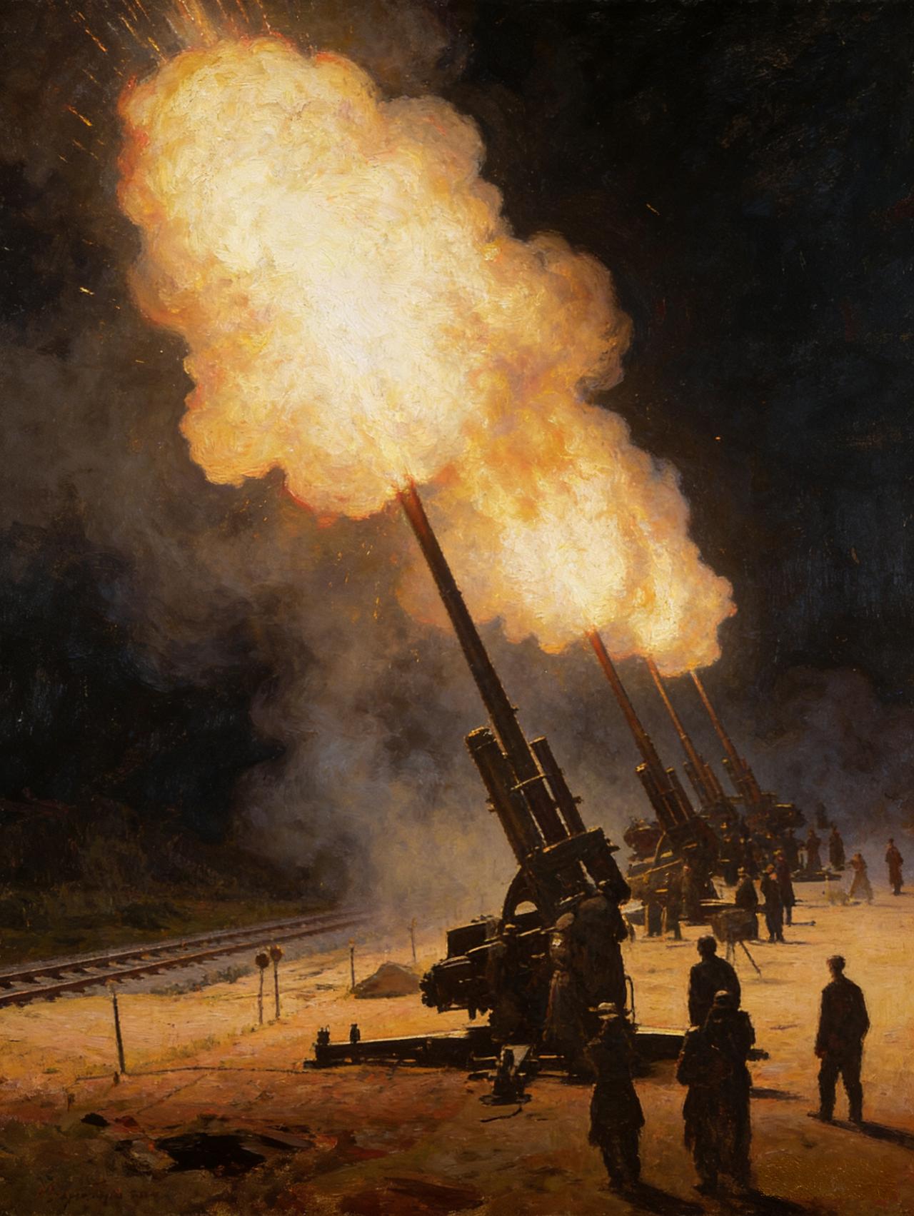 德军88毫米反一切炮[呲牙] 夜间对空射击