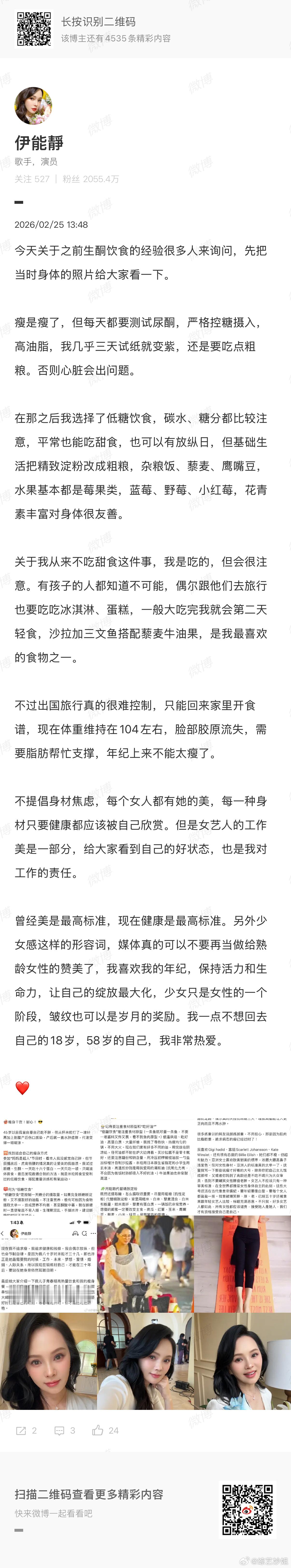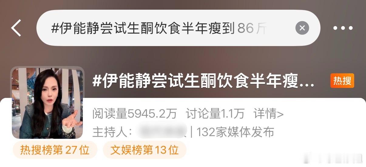 「伊能静尝试生酮饮食半年瘦到86斤」登上热搜后,伊能静发文回应,称瘦是瘦了,但还是要吃点粗粮,否则心脏会出问题。在那之后选择了低糖饮食,碳水和糖分都比较注意,平时也能吃甜食,现在体重维持在104斤左右伊能静回应生酮饮食减肥伊能静现在体重104斤