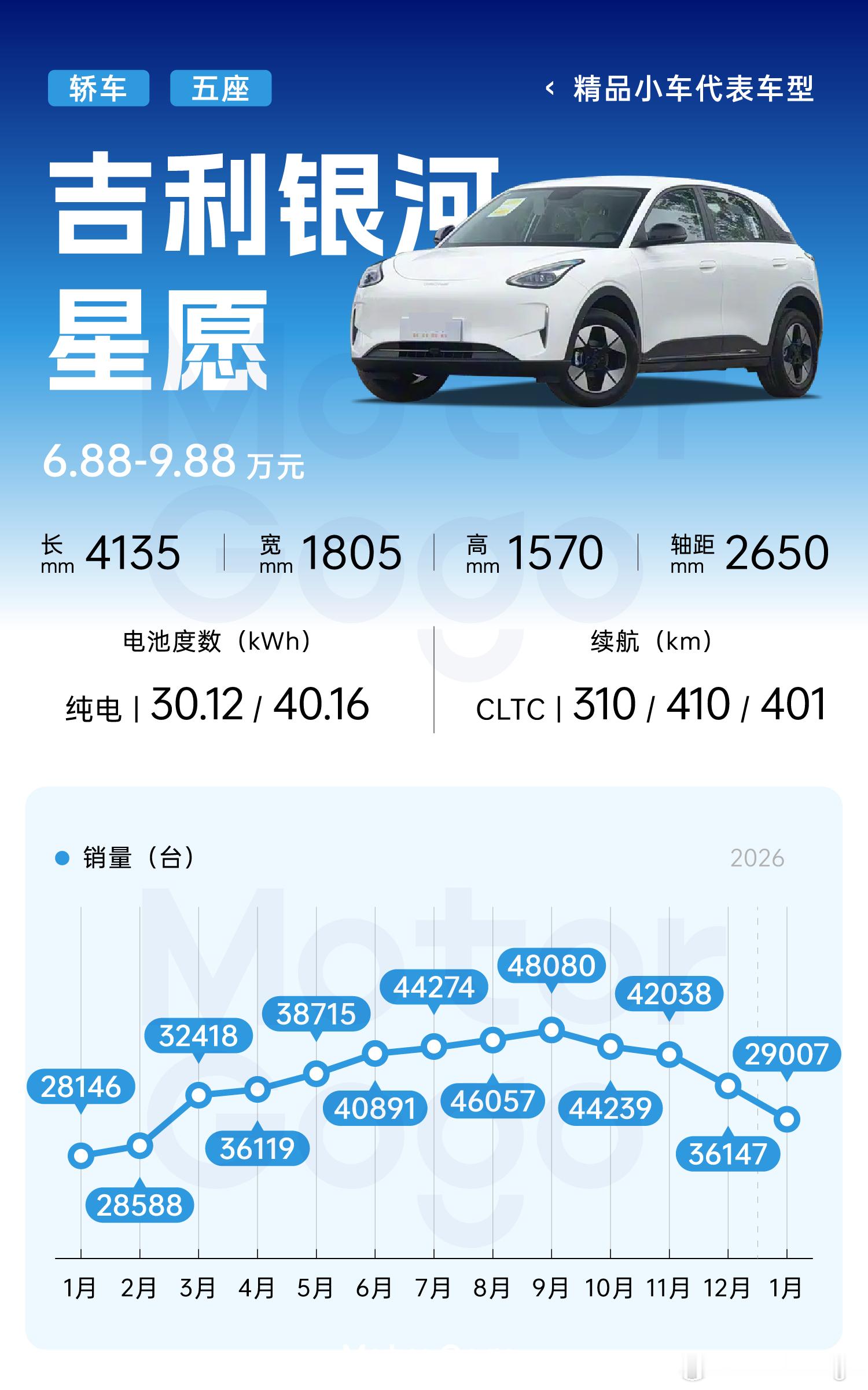 早在去年星愿就已经取代比亚迪海鸥成为销量最好的 A0 级车型,去年更是连续 6 个月销量都在 4 万台以上,A0 级纯电小车,星愿一定要了解一下!