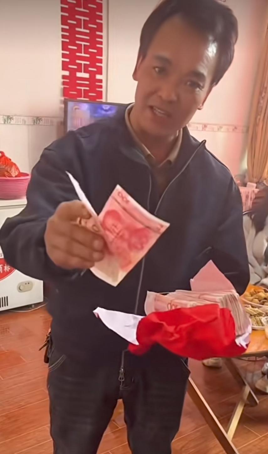 接过彩礼,从里面象征性抽出两张,随手将彩礼返还,同时从另一个兜里又掏出两沓钱,放到女儿手上当嫁妆。 广西这位老丈人火爆全网! 我也觉得他很帅,我们总是口口声声,要提高生育率,其实,首先应该提高年轻人的结婚率,而提高结婚率,首先应该降低年轻人的结婚成本! 把彩礼降下来,让年轻人敢结婚,能结婚,这样才能从根本上解决生育率低下的问题。 向这位广西老丈人致敬,希望这种收彩礼的方式全国推广。