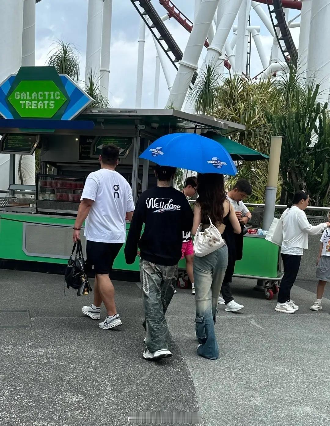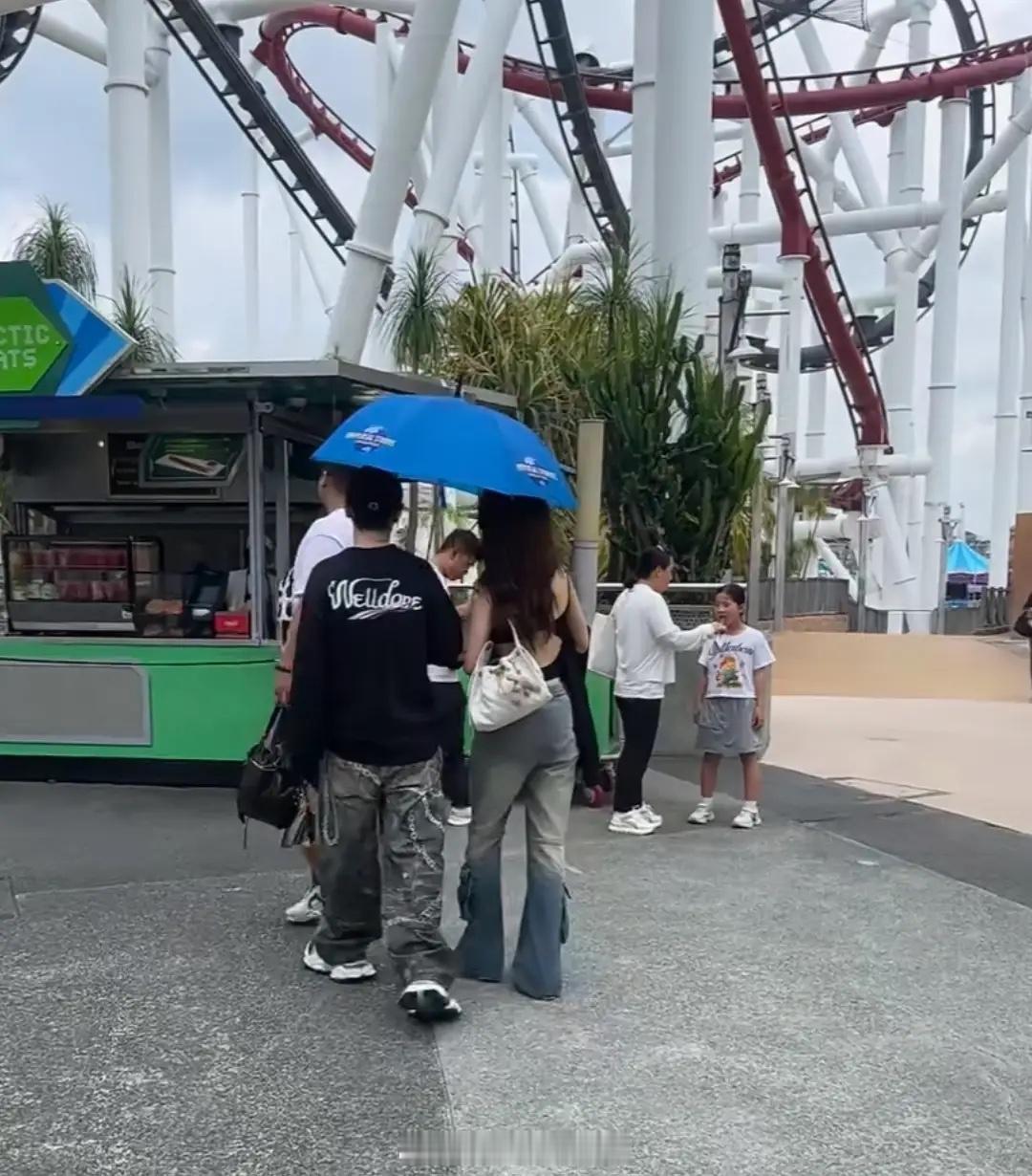 黄晓明带新女伴新加坡旅游,绅士给女方撑伞,身材不如杨颖叶珂!