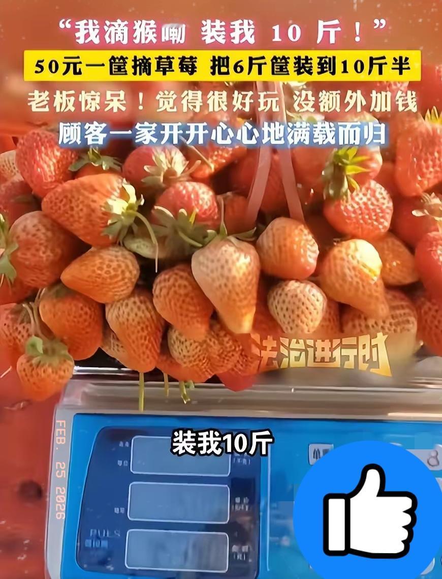 🌙安徽临泉,一女子带着孩子们去摘草莓,老板说50元一篮子,万万没想到,女子竟在篮子中装了10斤草莓。在女子去结账时,老板都被惊呆了,这个篮子原本最多装6斤。 老板本以为游客随便装装也就四五斤,稳赚不赔,可这位妈妈太会过日子,把草莓摆得严丝合缝,一点空隙都不留,直接把6斤的篮子装到10斤,这波操作直接把老板看懵。 我觉得这事真不怪顾客,要怪就怪老板自己规则没说清。既然口口声声说装多少都行,那就得认账,做生意最看重的就是诚信和契约精神,不能等人家装满了又觉得亏。 当然也不是鼓励大家都往死里装,出门消费图个开心,互相体谅更舒服。但规则就是规则,模糊不清引发纠纷,吃亏的还是商家自己。 最后两人协商补了20元,也算和平解决。这事也给所有做生意的提个醒,活动规则一定要写明白,别等被“上一课”才后悔。 换作是你,遇到50元一篮随便装,你会尽量装满还是适可而止? 需要我帮你再写一版更犀利、更吸粉的微头条吗?