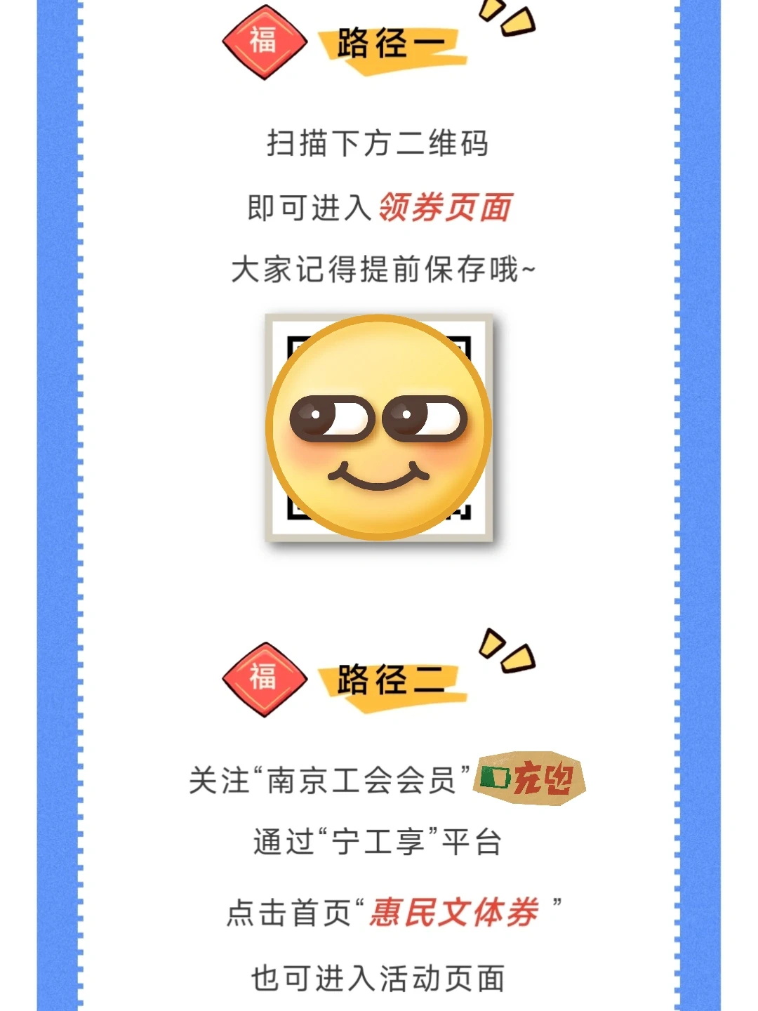 ①可以通过活动二维码扫码(南京工会会员推文中获取),抢券快人一步!