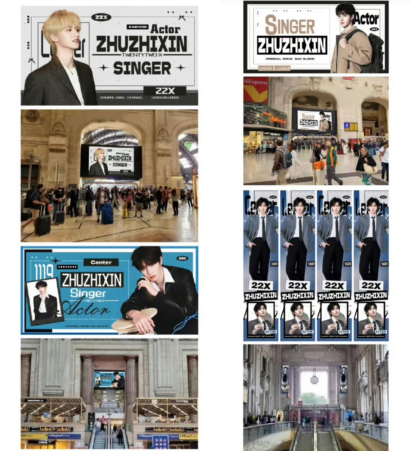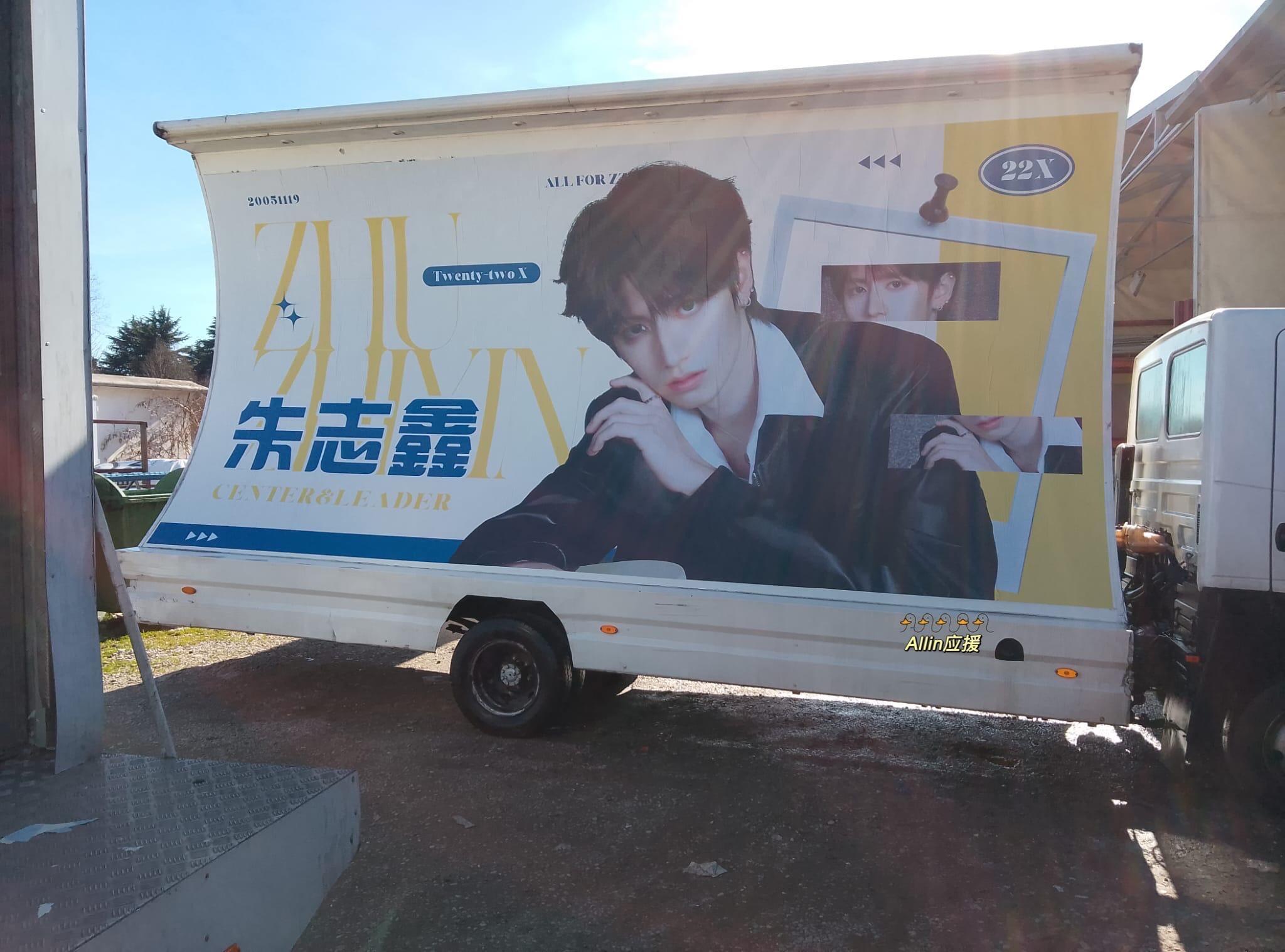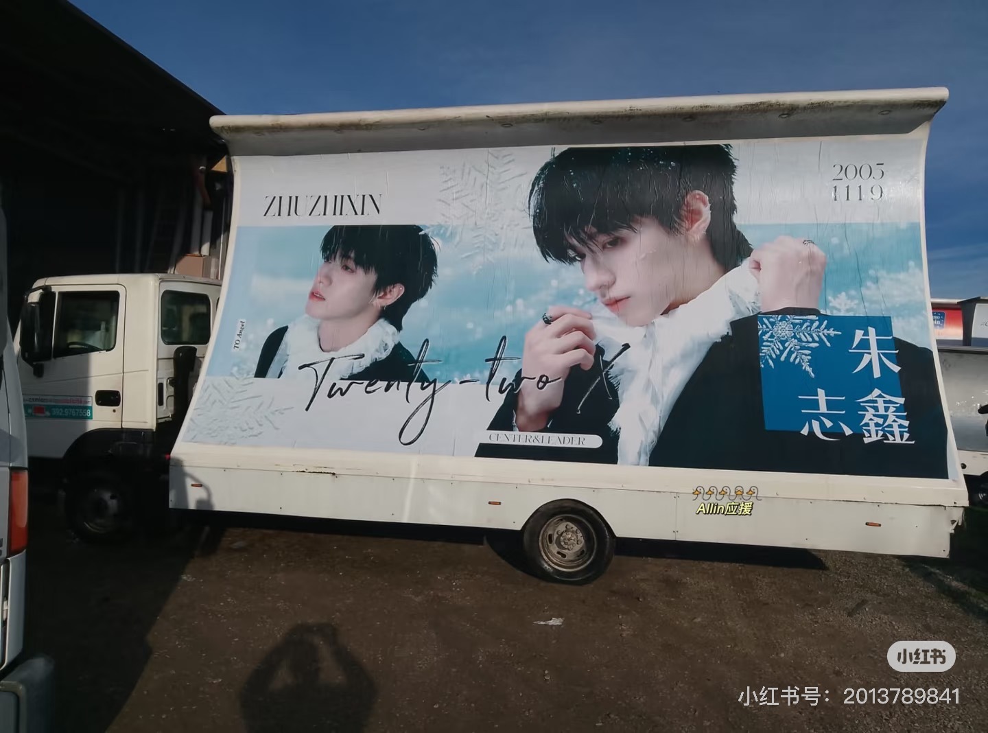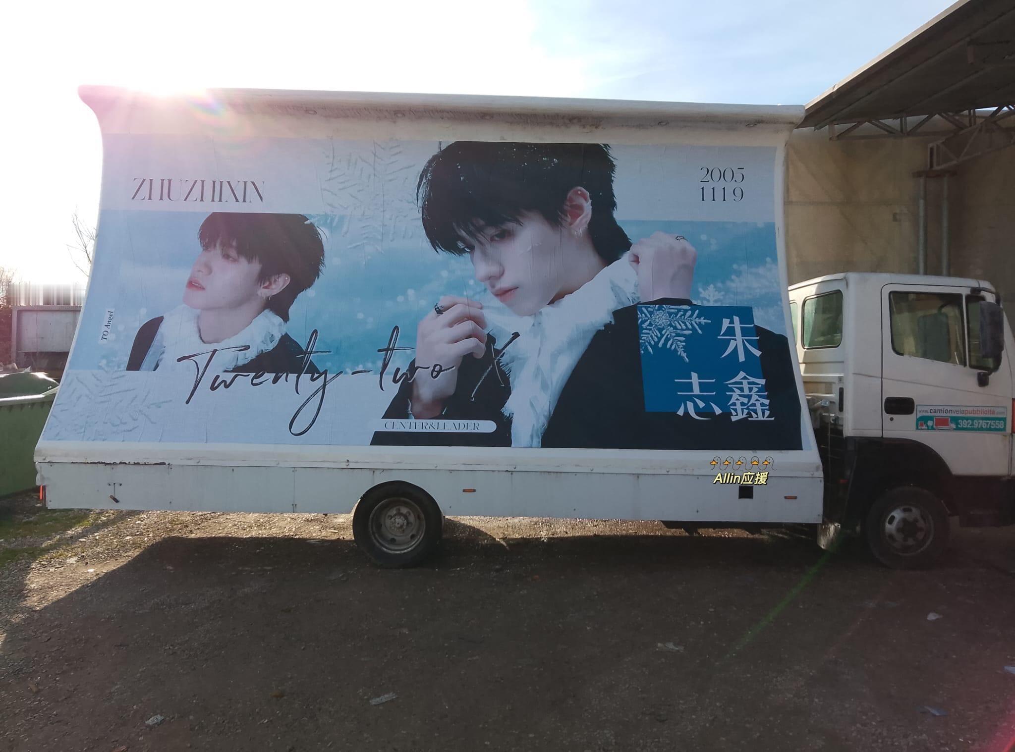 朱志鑫米兰海报车应援 朱志鑫米兰巡游海报车帅炸了💥双面大型海报曲面屏全天候霸屏