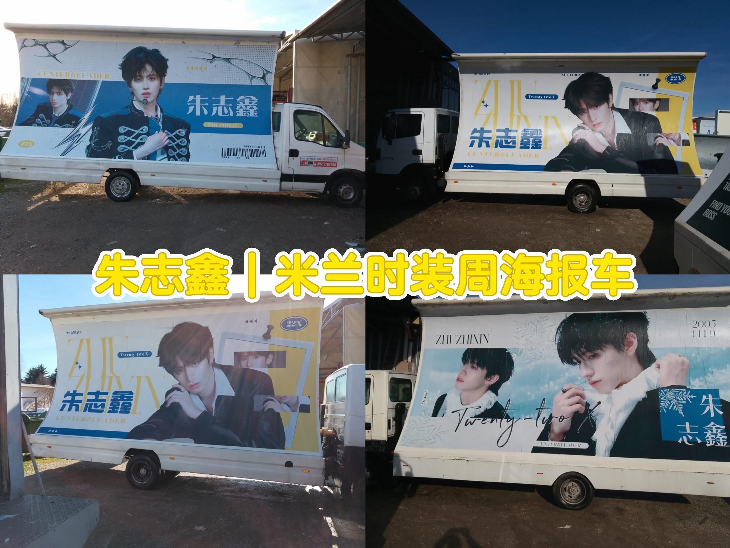 朱志鑫米兰海报车应援 朱志鑫米兰巡游海报车帅炸了💥双面大型海报曲面屏全天候霸屏巡游秀场周边!大明星就这样闪耀米兰✨朱志鑫米兰看秀