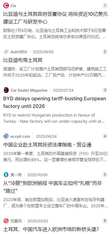 这次土耳其算是彻底打错了算盘!以为还能像当年卡我们要道那样,逼着中国企业低头。 结果中国这次不仅没惯着,反而直接掀了桌子。比亚迪的一纸公告,直接让埃尔多安政府傻了眼,以前那个为了大局忍气吞声的中国,早就不复存在了! 麻烦看官老爷们右上角点击一下“关注”,既方便您进行讨论和分享,又能给您带来更多优质的内容,感谢您的支持! 这次土耳其算是彻底打错了算盘。原本以为还能像当年卡我们脖子那样,逼着中国企业低头,结果中国这次不仅没惯着,反而直接掀了桌子。比亚迪的一纸公告,直接让埃尔多安政府傻了眼——以前那个为了大局忍气吞声的中国,早就不复存在了。 事情还得从2024年夏天说起。那时候土耳其人算盘打得精,为了吸引比亚迪去建厂,埃尔多安亲自出席签约仪式,双方握手言欢,敲定了10亿美元的投资大单,说要年产15万辆电动车,工厂定在西部马尼萨省,计划2026年底投产。当时大家都觉得这是双赢——比亚迪能绕过欧盟关税壁垒,土耳其能承接中国新能源产业链,带动本地就业。 但土耳其人骨子里那套"地缘勒索"的毛病又犯了。他们仗着自己横跨欧亚,是进入欧洲市场的必经之路,就觉得中国企业除了低头没别的选择。谈判桌上,土耳其官员的态度越来越强硬,不断加码各种附加条件,想复制当年在别的事务上逼迫中国让步的"成功经验"。他们天真地以为,比亚迪为了进欧洲,会像以前某些企业那样咬着牙忍下来。 可他们忘了,时代变了。比亚迪这几年在欧洲的布局早就不是单一依赖土耳其了——匈牙利的工厂已经奠基,2025年底就要投产;西班牙那边第三工厂的选址也在紧锣密鼓地推进。更要命的是,比亚迪自己造了8艘巨型滚装船,"探索者1号"一次就能拉7000辆车,海上运输的命脉握在自己手里。土耳其那点地缘优势,早就被中国企业的全球化布局给稀释了。 面对土耳其的步步紧逼,比亚迪这次没惯着。内部评估下来,既然土耳其的条件这么苛刻,那干脆调整战略——原本打算优先投产的土耳其工厂,优先级往后排。虽然官方公告写得体面,说"根据市场情况优化全球产能",但明眼人都看得出来,这就是直接掀桌子不玩了。消息传出来,土耳其政府内部傻了眼,他们等了又等的第二家中国车企,到现在还没个准信。 这一下,土耳其亏大了。本来借着比亚迪的投资,能带动上千个就业岗位,把本土汽车产业链带起来,还能从欧盟关税同盟里捞好处。结果现在煮熟的鸭子飞了,不仅10亿美元投资悬了,更重要的是错过了承接中国新能源产业转移的窗口期。旁边匈牙利那边笑开了花——人家今年底工厂就要投产了,工人培训都搞完了。 这事背后,折射出中国企业全球化逻辑的根本转变。以前咱们出海,确实有时候为了大局忍气吞声,被人家卡着要道也只能咬牙扛。但现在不一样了,中国企业的产业链布局是全球化的,你土耳其不靠谱,我转头就去匈牙利;你条件苛刻,我西班牙工厂马上跟进。主动权牢牢握在自己手里,再也不是那个被人拿捏的软柿子了。 土耳其人这回算是上了一课——地缘优势这东西,只有在别人离不开你的时候才有用。当中国企业手里有了船队、有了多国布局、有了完整的产业链,谁还稀罕你那一个通道?想卡脖子?对不起,咱们已经学会自己造船过海了。