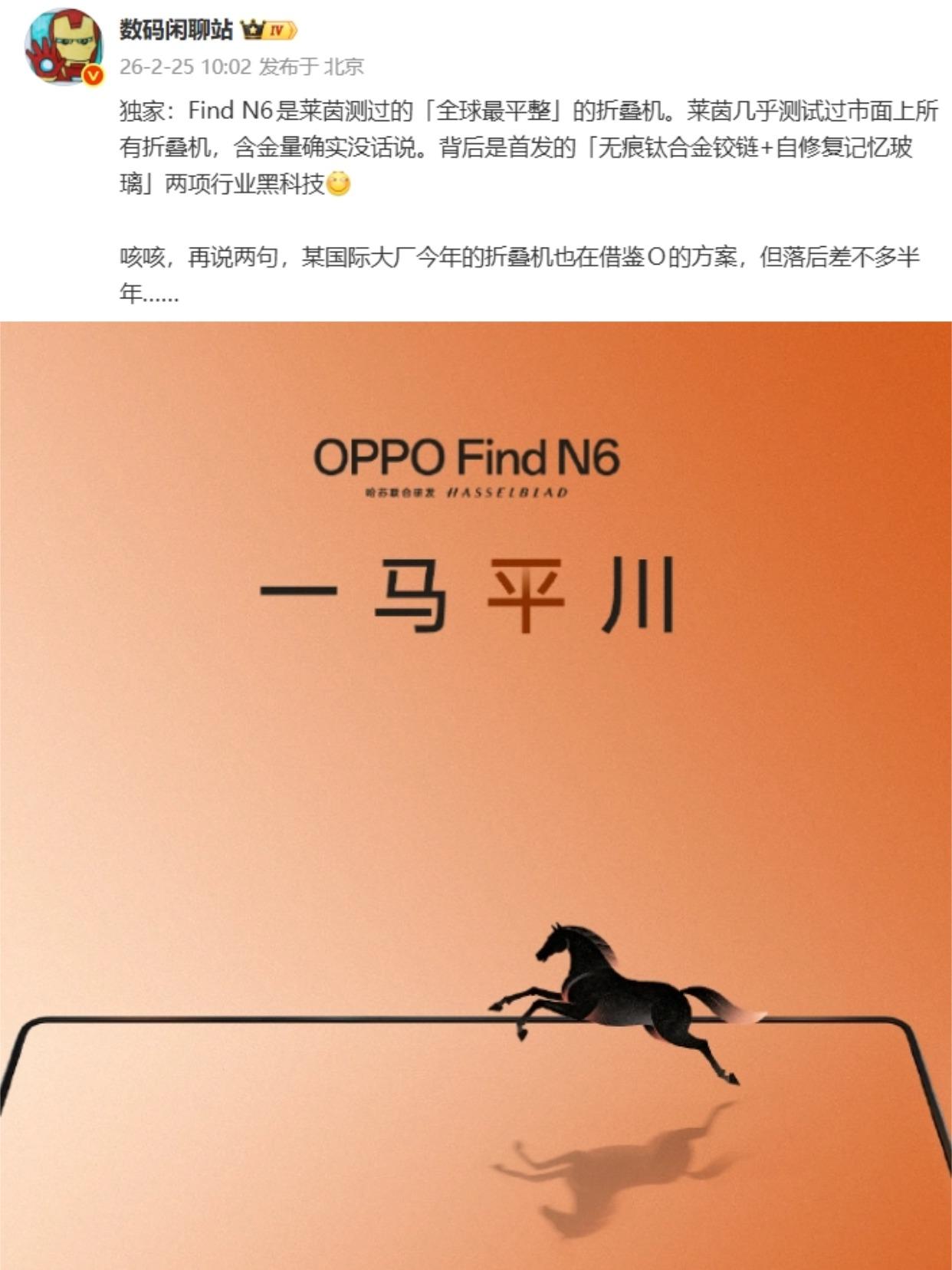 2026年折叠屏丨苹果OPPO神仙打架 以前总听到有人说“折叠屏不实用”,但今年估计就没什么人说了 2026折叠屏直接翻天,苹果这条 “大鱼” 终于要入场,还被曝参考安卓无折痕方案,今年必是神仙打架! 帮你们整理好两台必看旗舰,看完直接不纠结👇 📱 iPhone Fold(苹果首款折叠) ✅ 核心看点: A20 Pro 芯片 + iOS 生态,性能天花板 预计秋季发布,价格或达2万 📱 OPPO Find N6(预计3月发布,比iPhone早半年抢跑,独占“无折痕”赛道!) ✅ 核心看点: 无痕钛合金铰链 + 自修复记忆玻璃 莱茵认证「全球最平整折叠屏」,真・视觉无折痕 渲染图爆出折叠屏首款哈苏全焦段四摄,拍照直接封神 比 iPhone Fold早半年发布,价格更香 连苹果都拆 N5 研究它的铰链方案 这么一看就很清楚了: 👉 想要生态,等 iPhone Fold 👉 想早用上无折痕、拍照强、性价比高 → 直接蹲 OPPO Find N6 折叠屏手机 iPhoneFold OPPOFindN6 苹果 圈 手机推荐折叠屏怎么选 数码