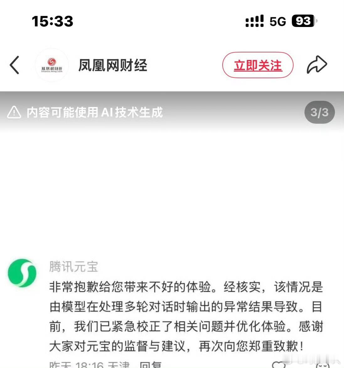 腾讯元宝向用户道歉这提示词怎么不敢放出来呢?!现在的这种生成式 AI 距离有意识还差得远,它就是被训练数据和对话上下文带偏了,这个应该是训练数据里学习到了这种内容,和这个用户交流的话题里面把这个触发了,突破安全层拦截了,它就顺着概率最高的模板输出了脏话。本质上就是训练数据里的不良内容、多轮对话的上下文压力、安全对齐的短暂失效三者凑到一起了,如果AI真的有意识了,那可就刺激了