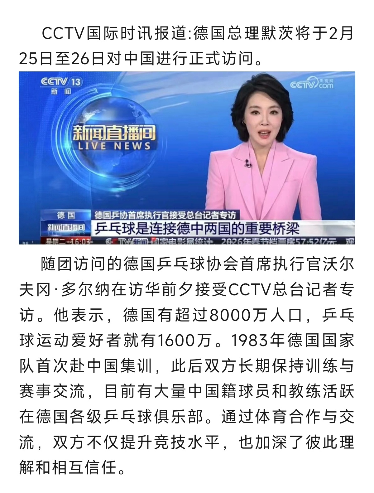 句句没提樊振东,处处皆是樊振东。乒乓球连接中德友谊:德国总理默茨对中国进行访问,随团访问的有德国乒乓球协会首席执行官!