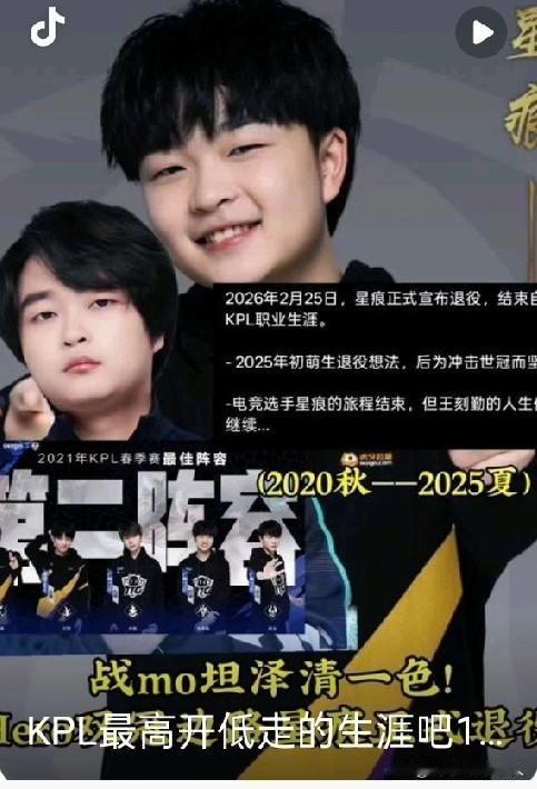 星痕退役 是的,星痕(本名王刻勤)已于2026年2月25日(生日当天)正式官宣退役,结束了长达7年的KPL职业生涯 。 他在长文中回顾了职业生涯:从出道即巅峰拿下双冠,到经历位置轮换、低谷与心态挣扎,曾租借至武汉eStarPro,2025年夏季赛转会至深圳DYG 。他表示“电竞选手星痕的旅程到此为止,但王刻勤的人生仍在继续”,并感谢了所有帮助过他的教练、俱乐部、选手与粉丝 。 星痕作为南京Hero久竞的功勋选手,以出色的对抗路实力和大赛表现著称,是KPL公认的天才少年选手之一。深圳DYG星痕 星痕篮球 星痕漫画