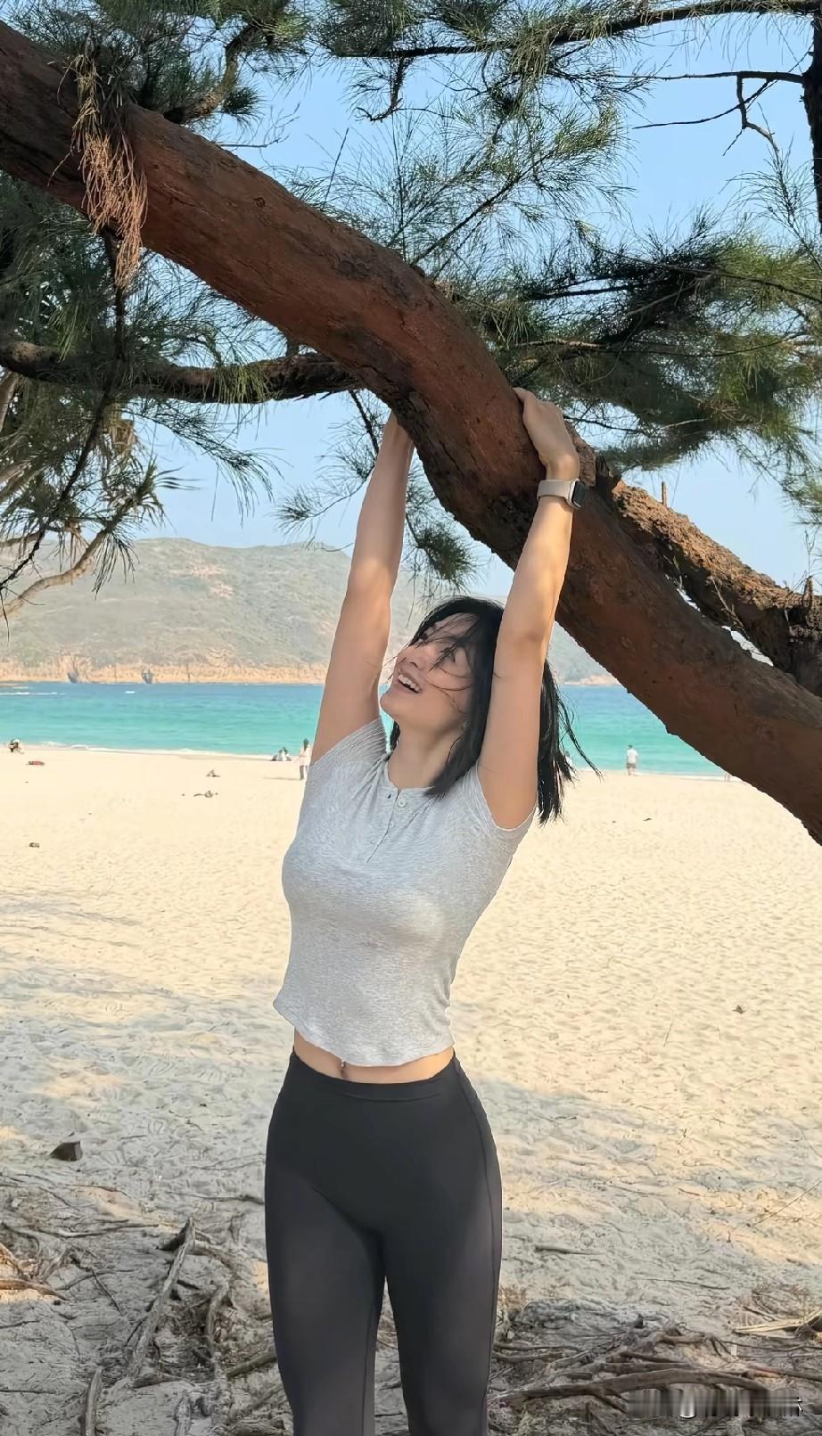 蔡文静趴在沙滩上美图太绝了